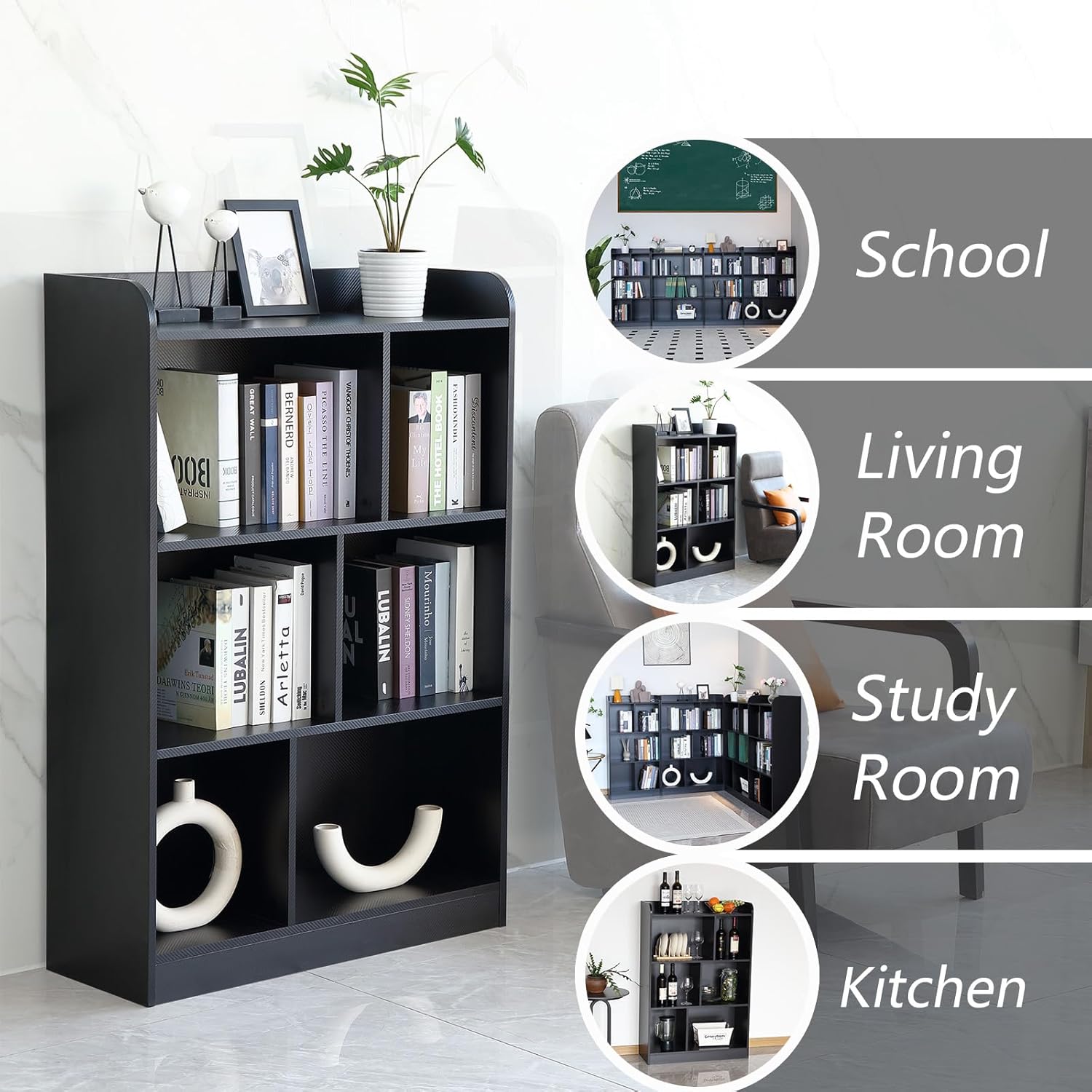 - ăMulti-scene & OrganizationăApplied in different scenes to your preference, achieving everything you need in only one cube storage. The top of the cube shelf has a large space, offering to place plants, photos, and artwork. The 6 versatile cubes of book shelf provides an ideal way to organize home better, putting books in the office, storing clothes in the bedroom, and placing Bluetooth audio in the living room