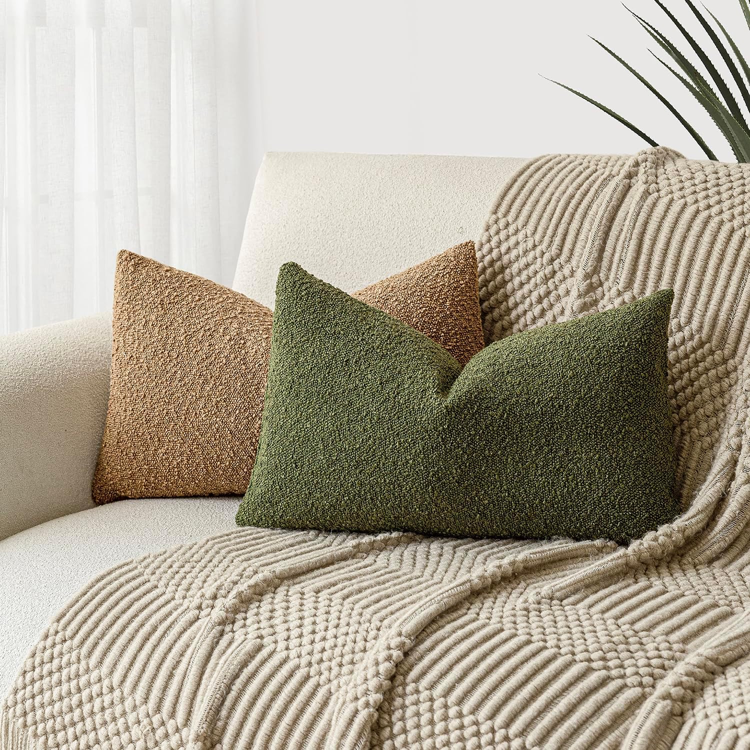 Foindtower Pack of 2 Modern Textured Boucle Throw Pillow Covers Accent Solid Decorative Lumbar Pillow Cases Cozy Couch Cushion Case for Chair Sofa Bedroom Living Room Home Decor, 12 x 20 Inch,Green