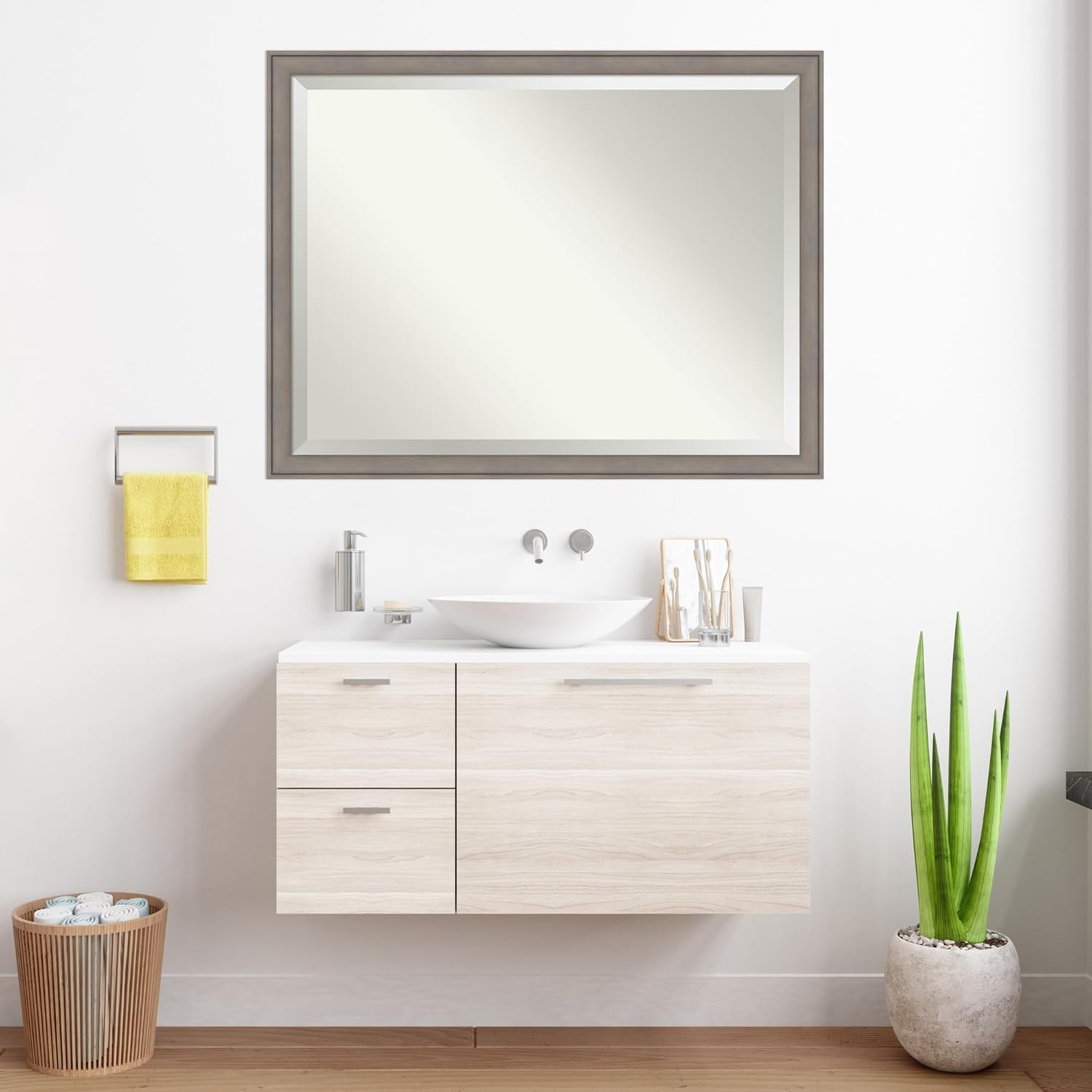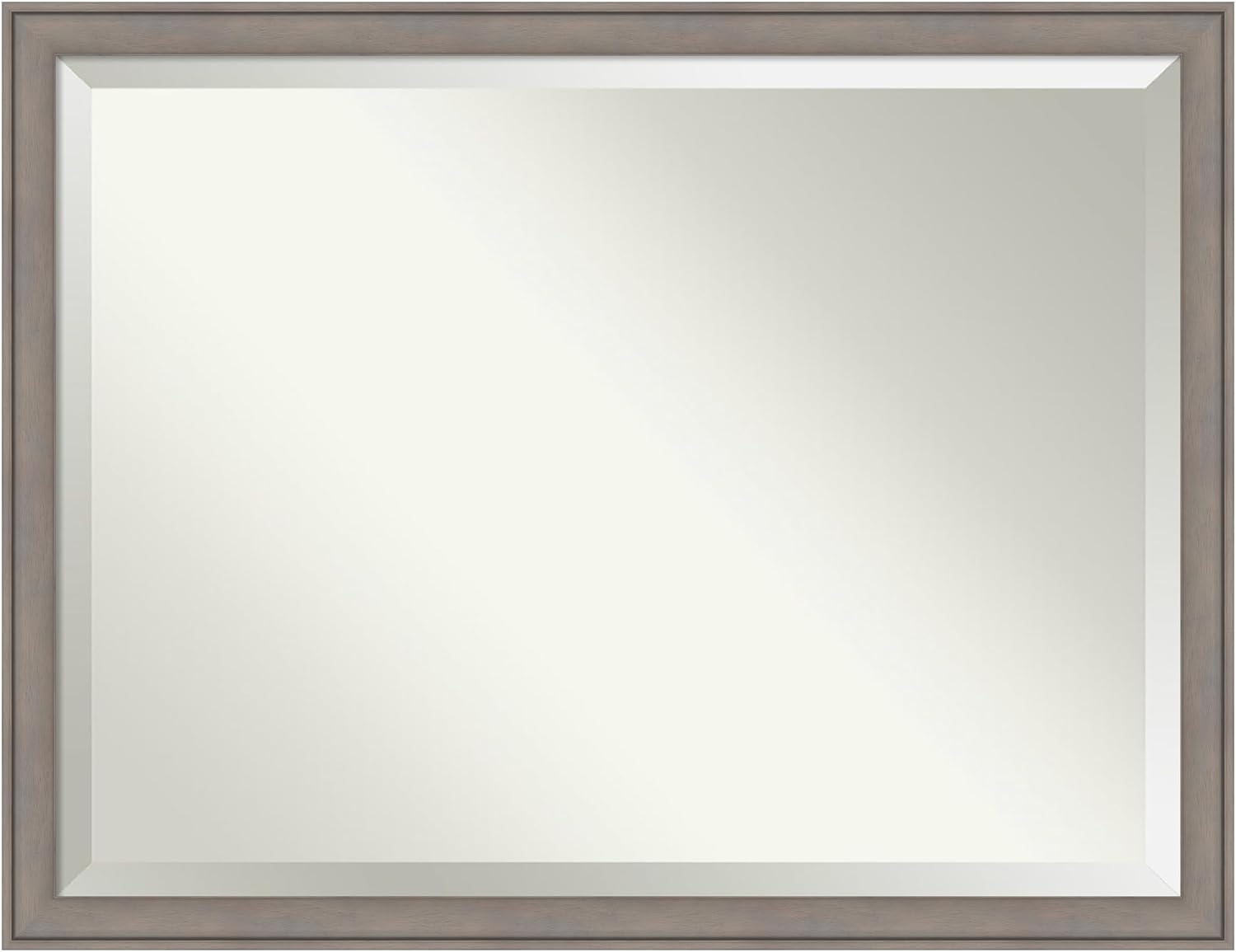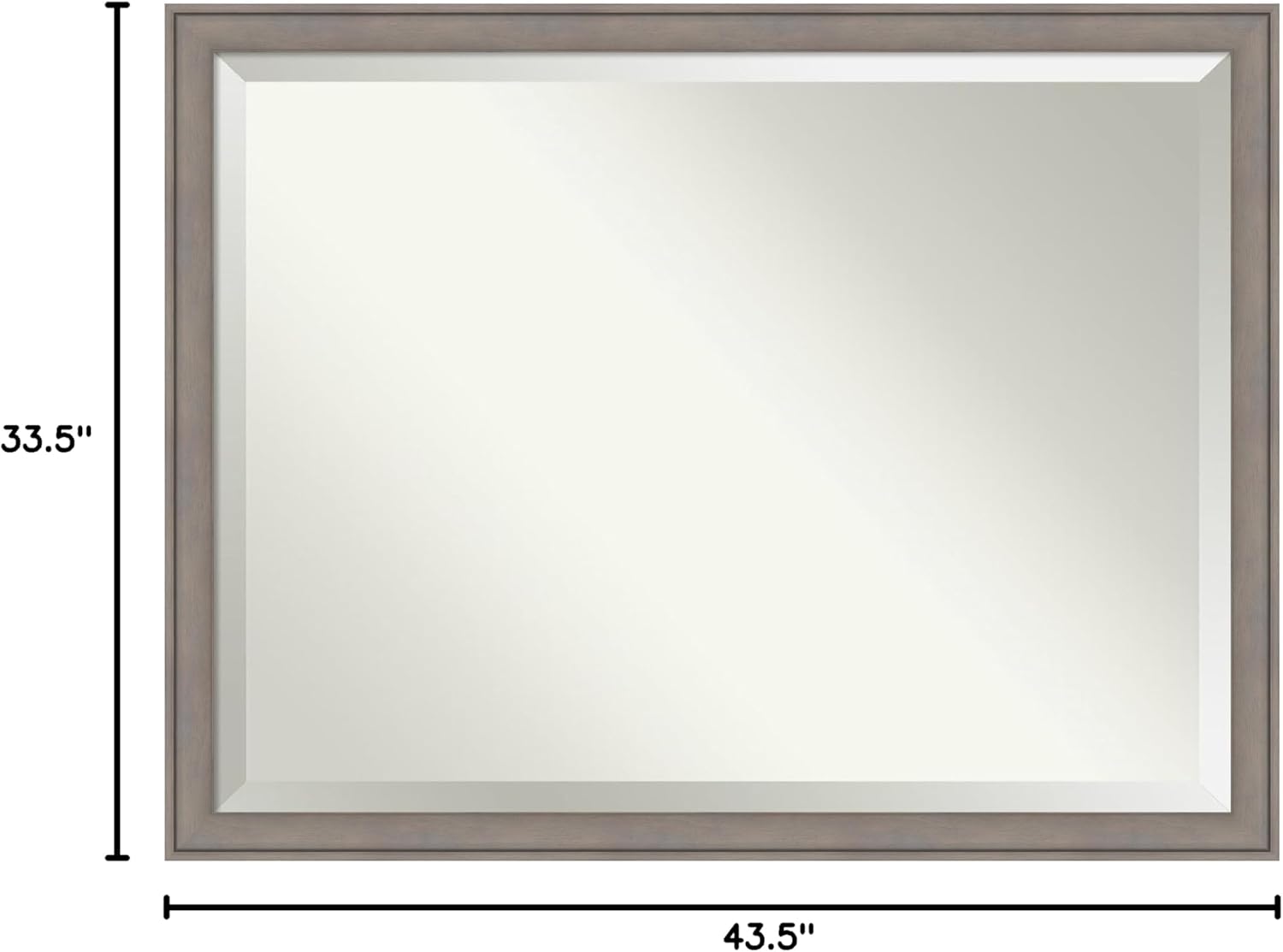 Amanti Art Grey Wall Mirror 34x44 Greywash Rectangle Bathroom Mirror for Wall Decor Living Room, X-Large Country Rustic Wood Frame, Hangs Horizonally and Vertically, Bathroom Decor, Beveled Edge