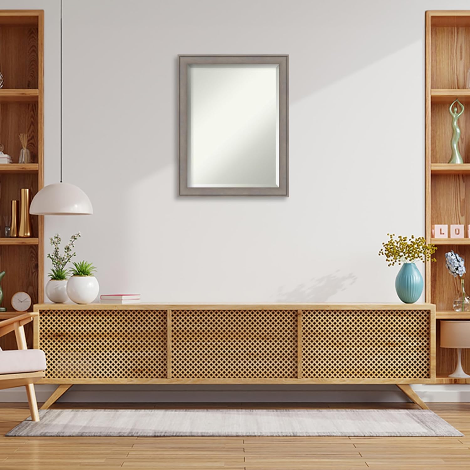 Amanti Art Grey Wall Mirror 28x22 Greywash Rectangle Bathroom Mirror for Wall Decor Living Room, Medium Country Rustic Wood Frame, Hangs Horizonally and Vertically, Bathroom Decor, Beveled Edge