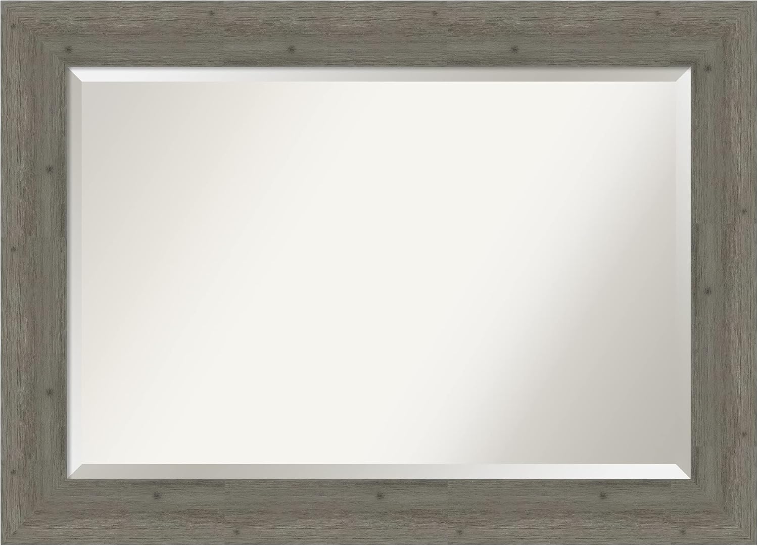Amanti Art Grey Wall Mirror 31x43 Fencepost Grey Rectangle Bathroom Mirror for Wall Decor Living Room, Large Country Rustic Wood Frame, Hangs Horizonally and Vertically, Bathroom Decor, Beveled Edge