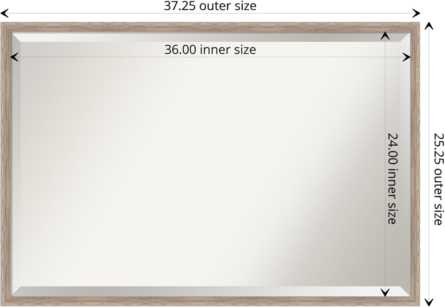- MIRROR DETAILS: This mirror features premium glass for a clear, undistorted image and is finished with a beveled edge to give the glass a decorative touch. The overall size of this bathroom mirror measures exactly 37.25 x 25.25 inches, including the frame. Its reflective area measures 36 x 24 inches.