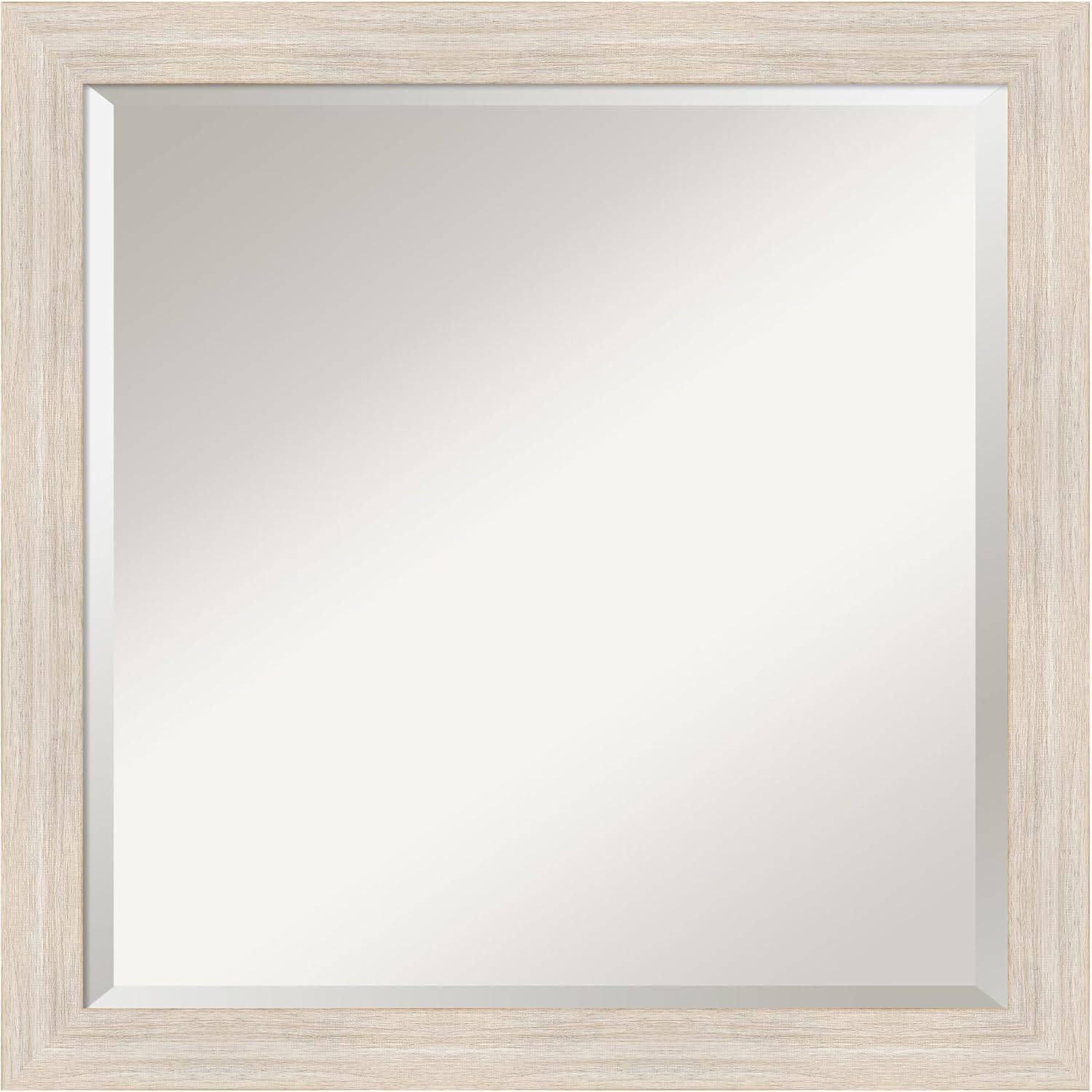 Amanti Art White Bathroom Mirror for Over Sink, 23x23 Hardwood White Wash Narrow Square Vanity Mirror, Medium Country Rustic Wood Frame, Hangs Horizonally and Vertically, Bathroom Wall Decor, Beveled
