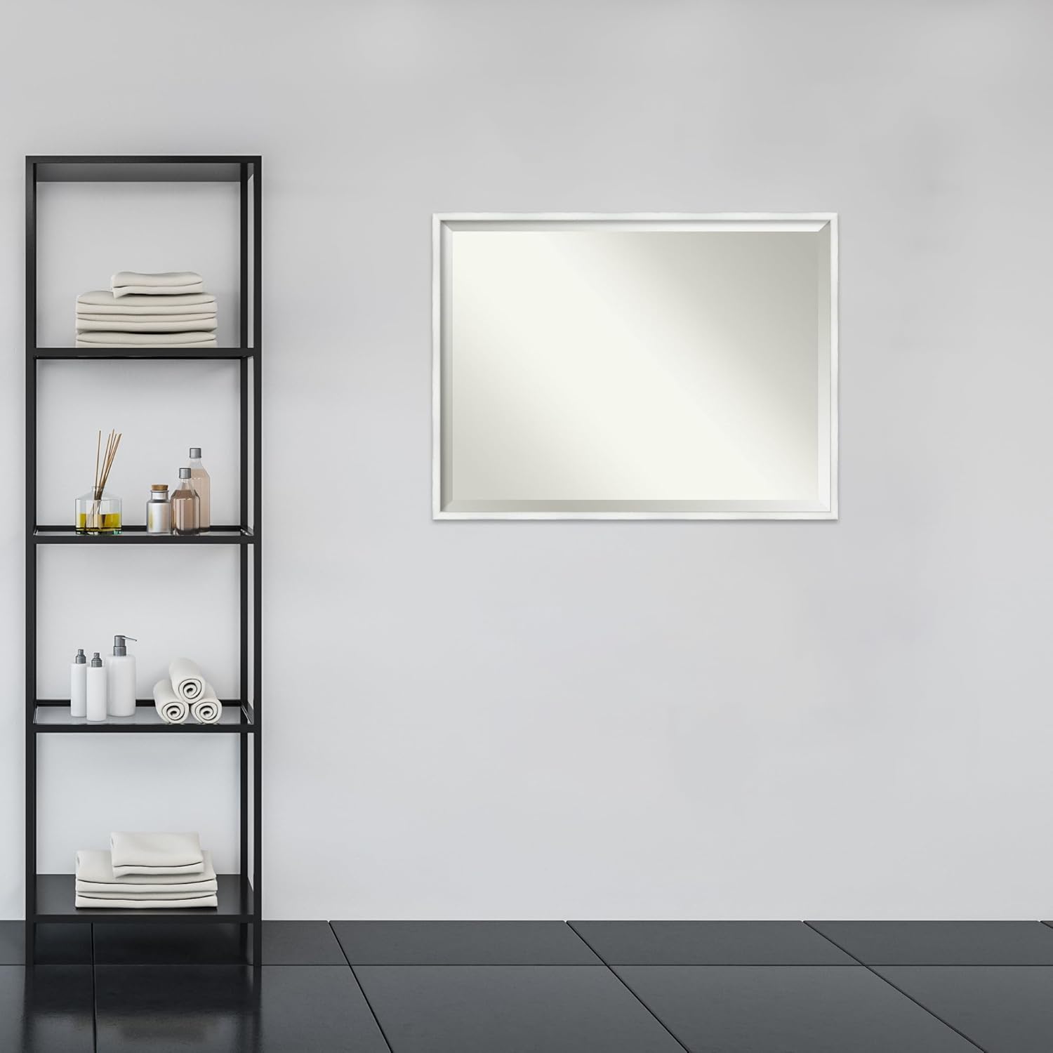 - MIRROR DETAILS: This mirror features premium glass for a clear, undistorted image and is finished with a beveled edge to give the glass a decorative touch. The overall size of this bathroom mirror measures exactly 41.25 x 31.25 inches, including the frame. Its reflective area measures 40 x 30 inches.