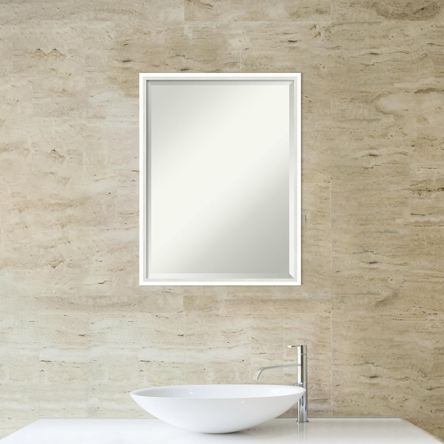 Amanti Art White Bathroom Mirror for Over Sink, 25x19 Lucie White Rectangle Vanity Mirror, Medium Modern Wood Frame, Hangs Horizonally and Vertically, Bathroom Wall Decor, Beveled Edge from WI, USA