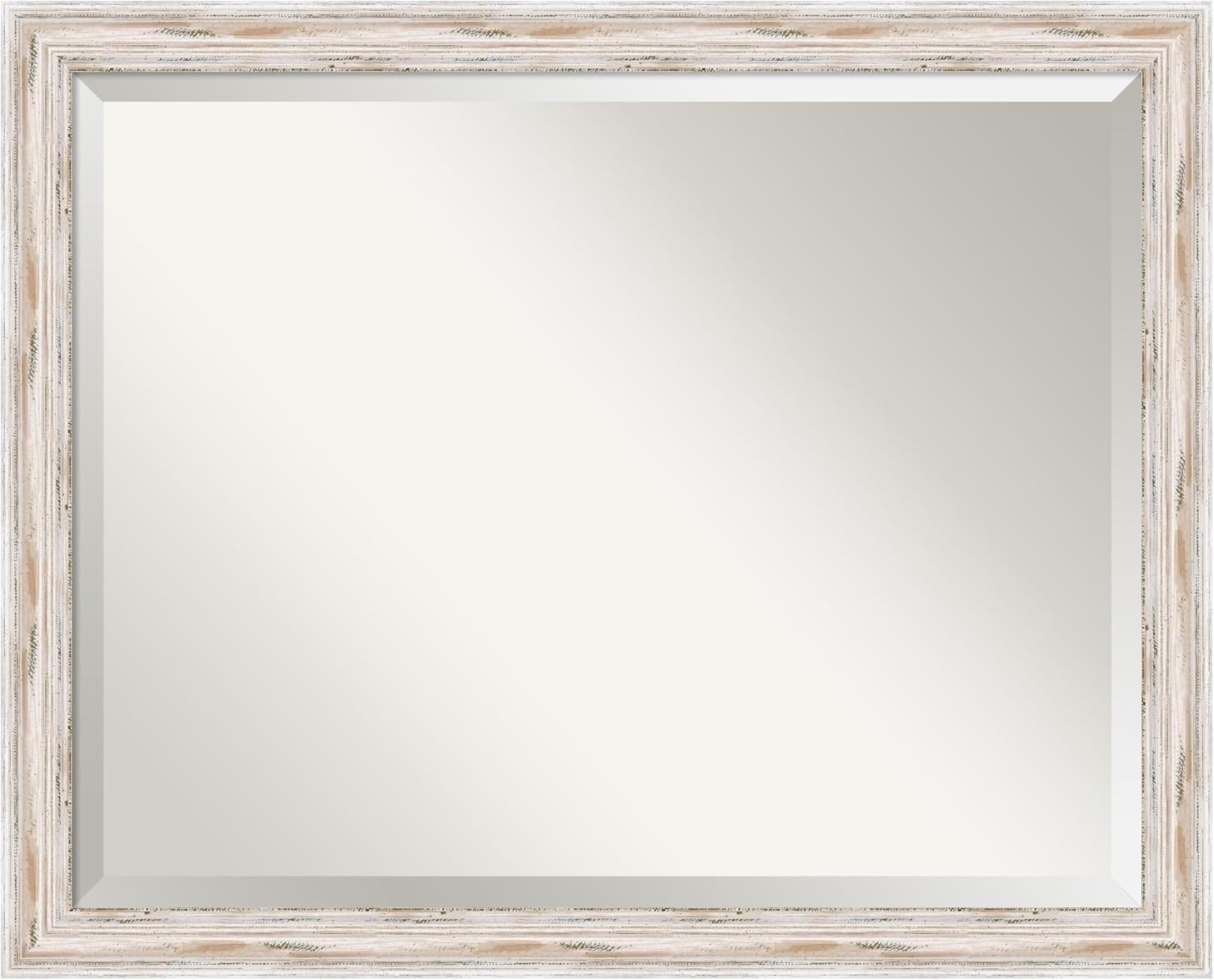 Amanti Art White Bathroom Mirror for Over Sink, 25x31 Alexandria White Wash Narrow Rectangle Vanity Mirror, Large Cottage Wood Frame, Hangs Horizonally and Vertically, Bathroom Wall Decor, Beveled