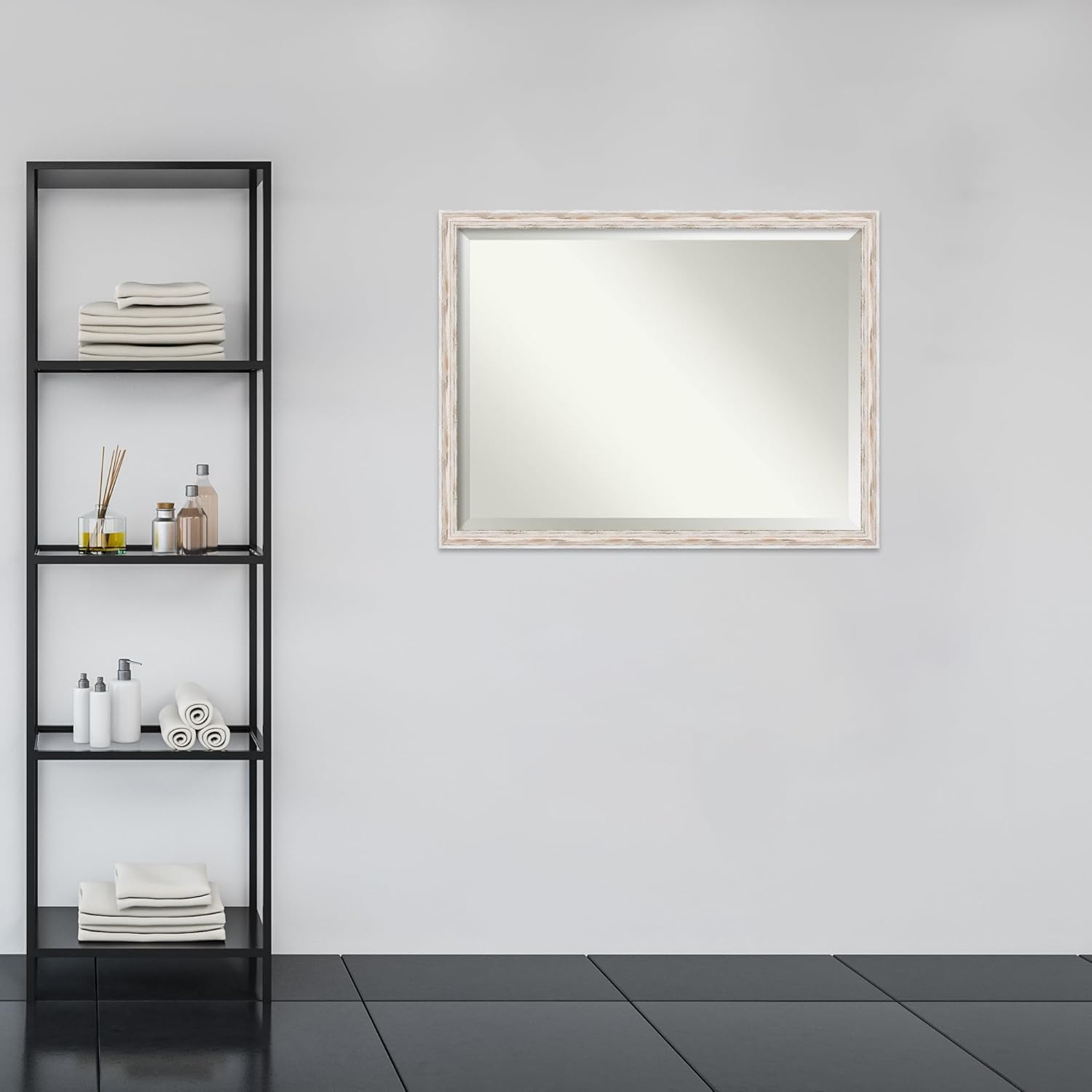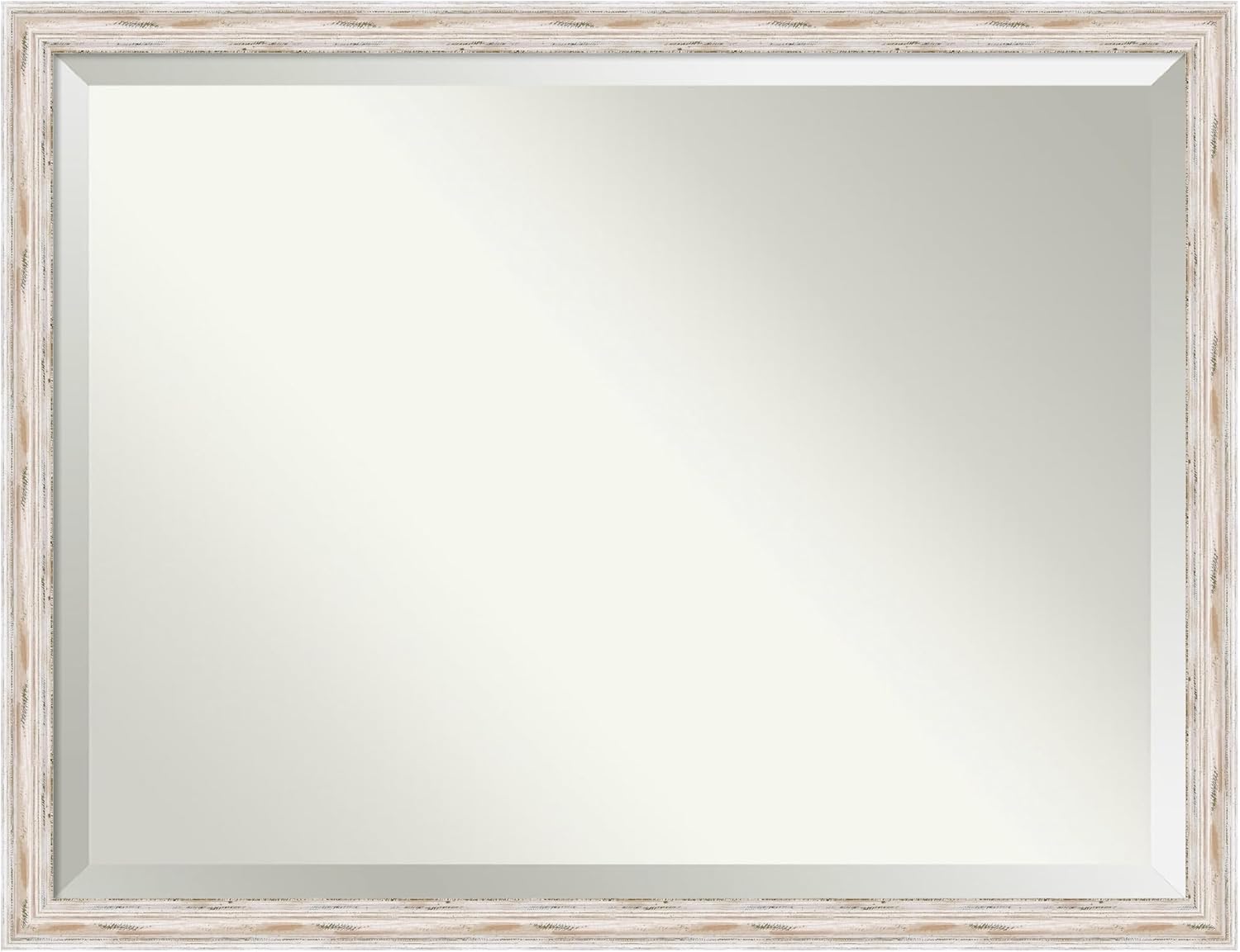 Amanti Art White Bathroom Mirror for Over Sink, 33x43 Alexandria White Wash Narrow Rectangle Vanity Mirror, X-Large Cottage Wood Frame, Hangs Horizonally and Vertically, Bathroom Wall Decor, Beveled
