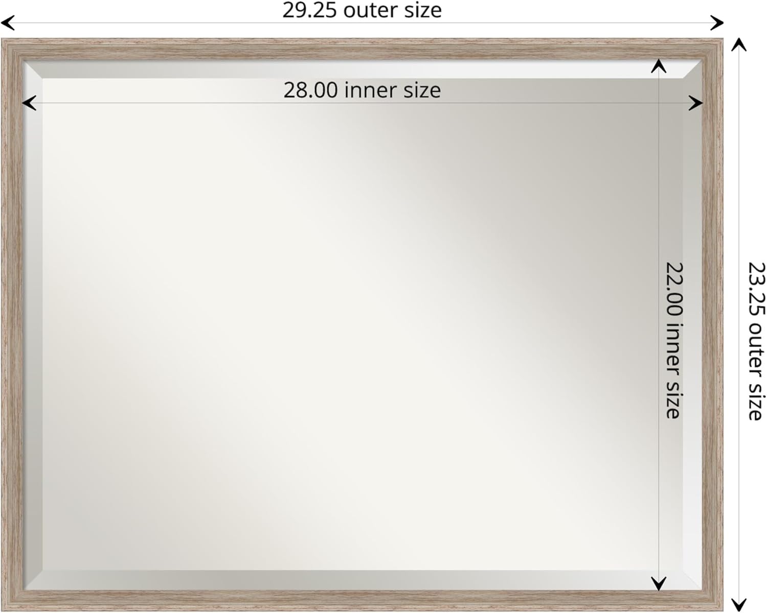 - MIRROR DETAILS: This mirror features premium glass for a clear, undistorted image and is finished with a beveled edge to give the glass a decorative touch. The overall size of this bathroom mirror measures exactly 29.25 x 23.25 inches, including the frame. Its reflective area measures 28 x 22 inches.