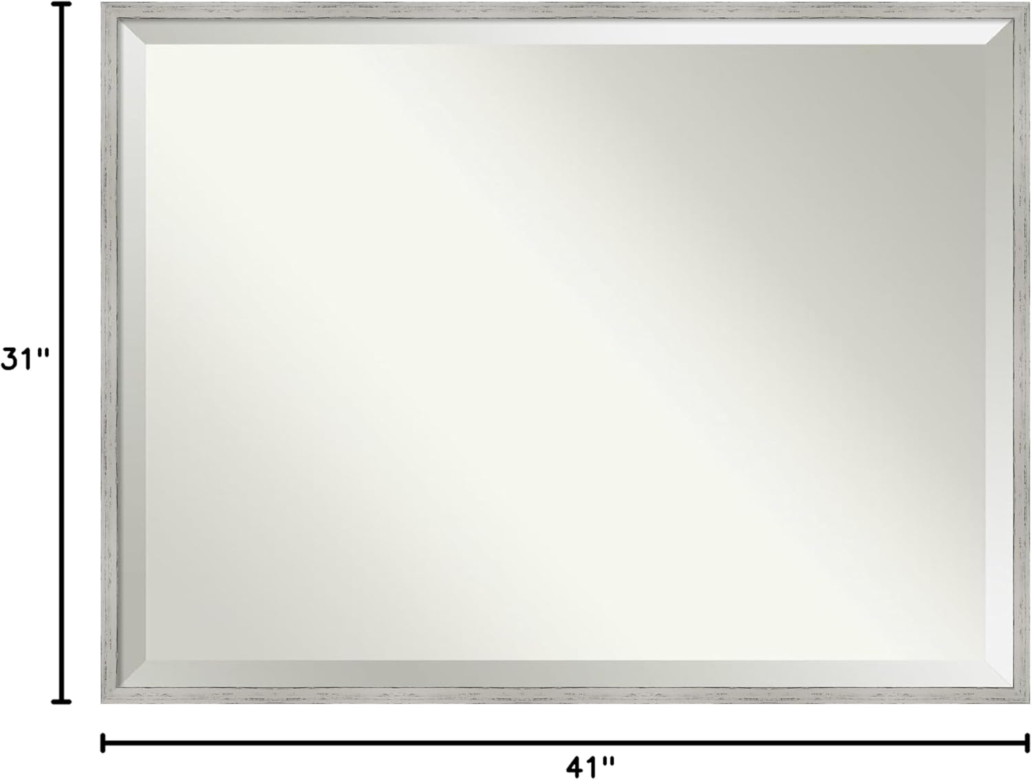 - MIRROR DETAILS: This mirror features premium glass for a clear, undistorted image and is finished with a beveled edge to give the glass a decorative touch. The overall size of this bathroom mirror measures exactly 41 x 31 inches, including the frame. Its reflective area measures 40 x 30 inches.