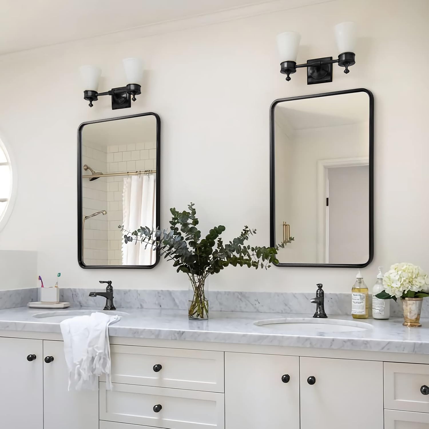 - Medium Size Ideal for Bathroom: At 24x32 inches, our rectangle mirror is an ideal size for your bathroom. The modern sophistication of the matte black finish and unique rounded frame design make this black mirror perfect for any decor style, from modern to farmhouse to rustic