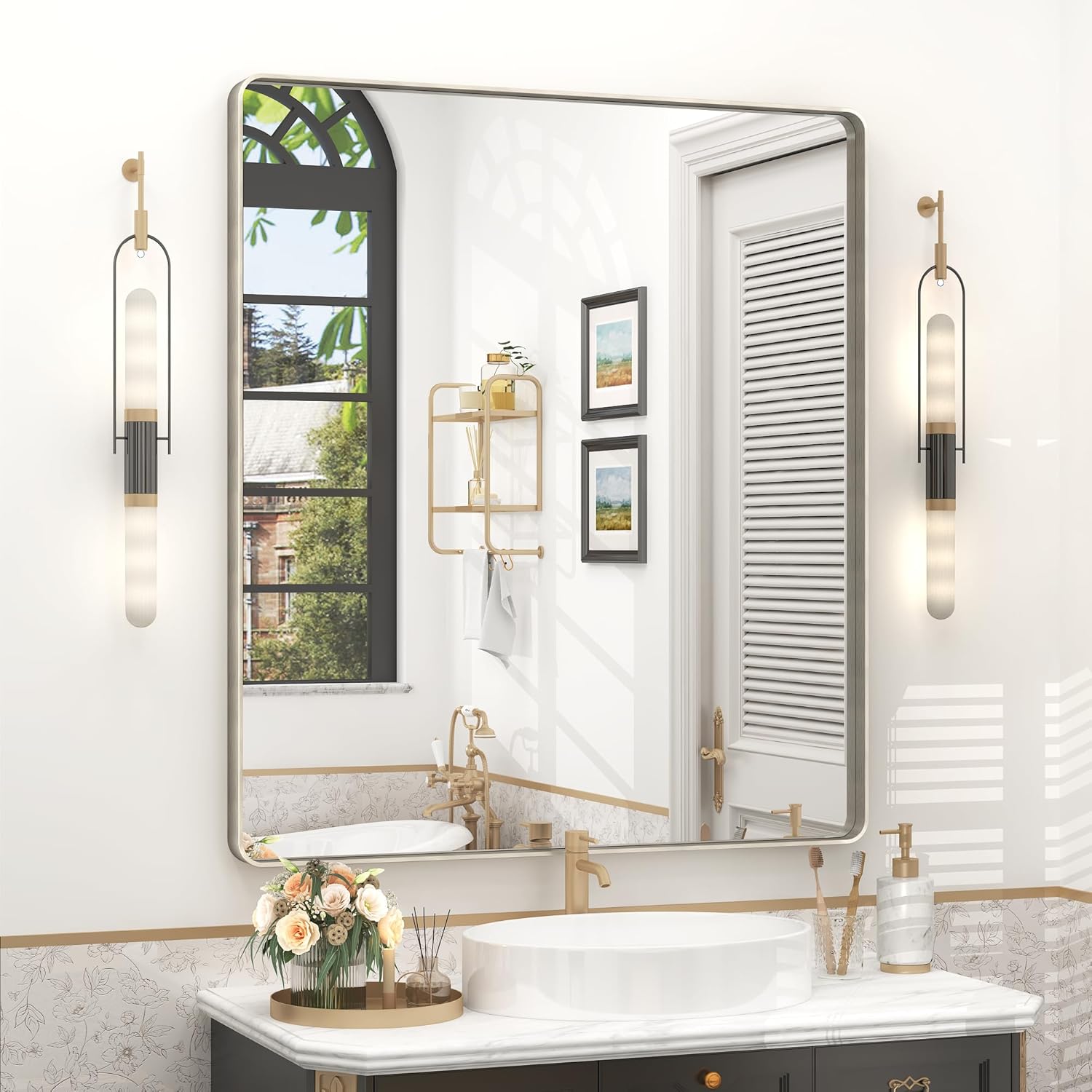 - Durable Silver Brushed Frame: VANLIO brushed nickel bathroom vanity mirror is made of premium brushed aluminum alloy frame, which is rust-proof, corrosion-resistant, and waterproof. More durable and sturdy, and non-deformed. With brushed texture and rounded corners, our Silver framed bathroom mirror looks very elegant and unique with modern and industry style, widely using in bathroom, vanity, farmhouse, bedroom, living room, dining room, entryway, fireplace.