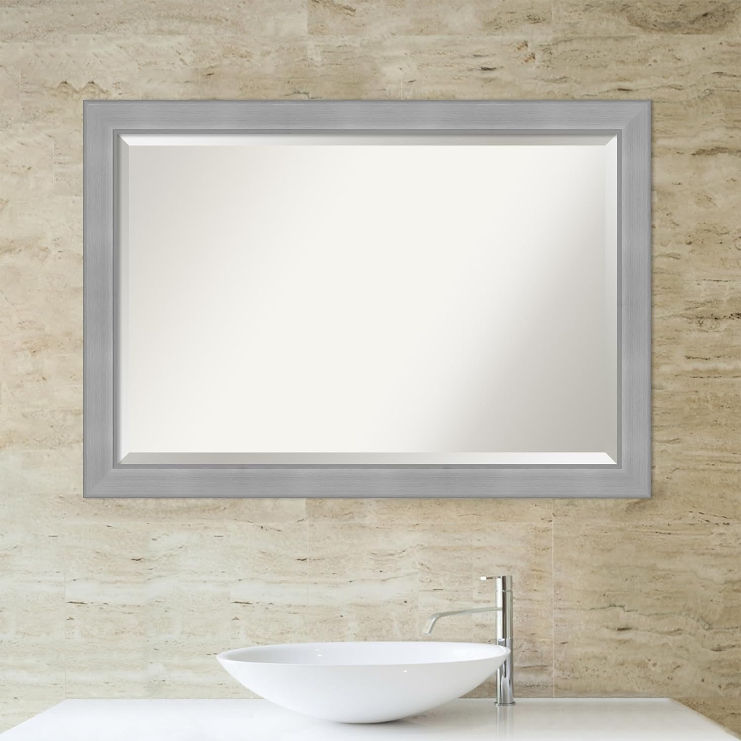Amanti Art Silver Bathroom Mirror for Over Sink, 28x40 Vista Brushed Nickel Rectangle Vanity Mirror, Large Casual Frame, Hangs Horizonally and Vertically, Bathroom Wall Decor, Beveled Edge