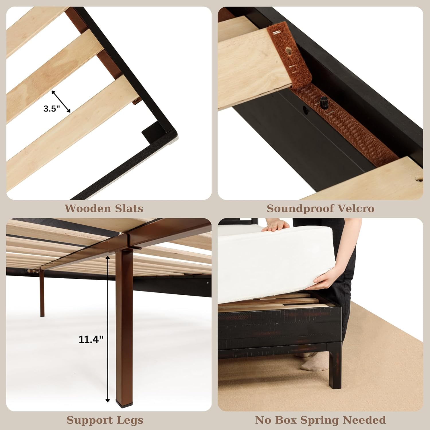 - NO BOX SPRING NEEDED: Featuring 12 well-spaced wooden slats with velcro, our king size bed frame and headboard eliminates the need for a box spring; Enjoy a sleek, supportive surface that enhances mattress stability and reduces noise