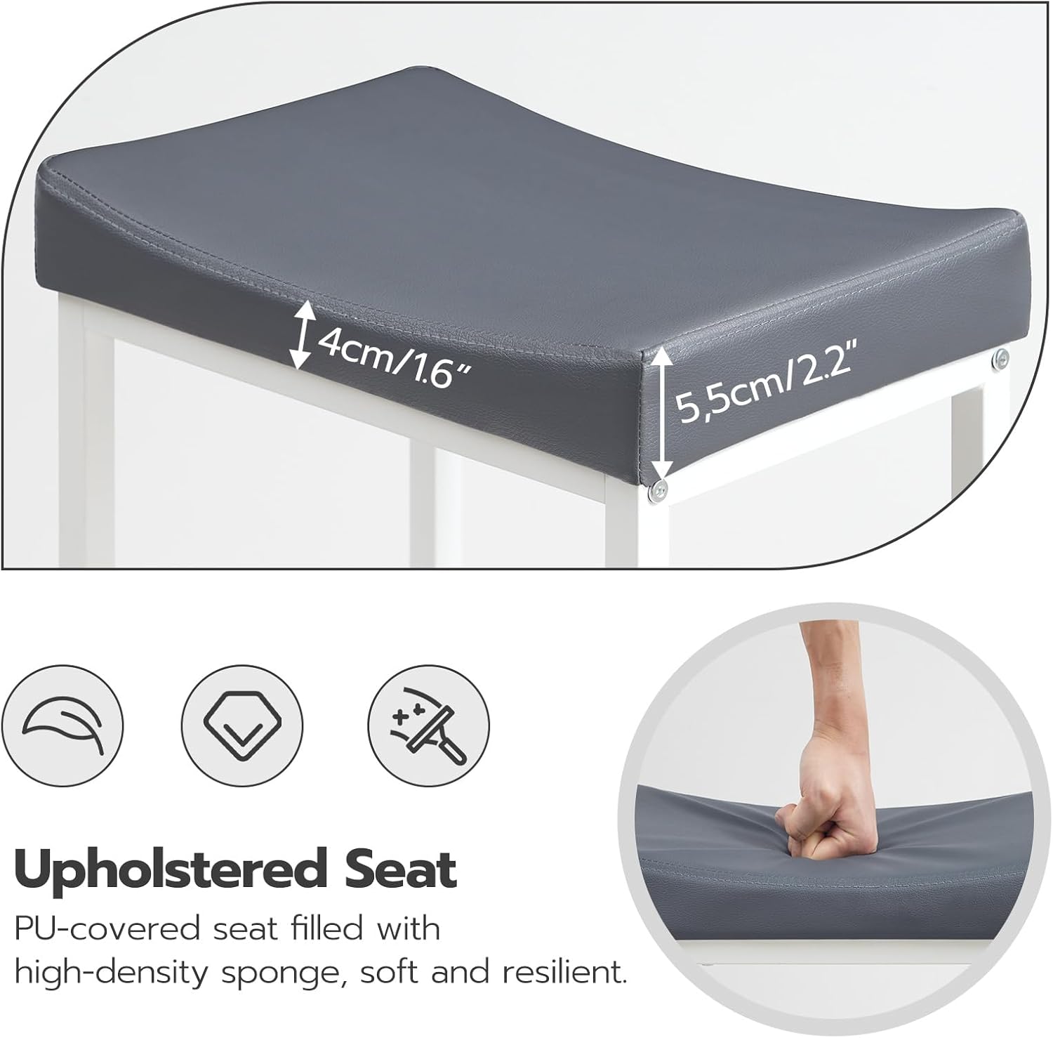 HOOBRO Bar Stools, Set of 2 Counter Height Saddle Chairs, 24.8 Inches, 2.4" Thick Upholstery, White and Gray WG10BY01
