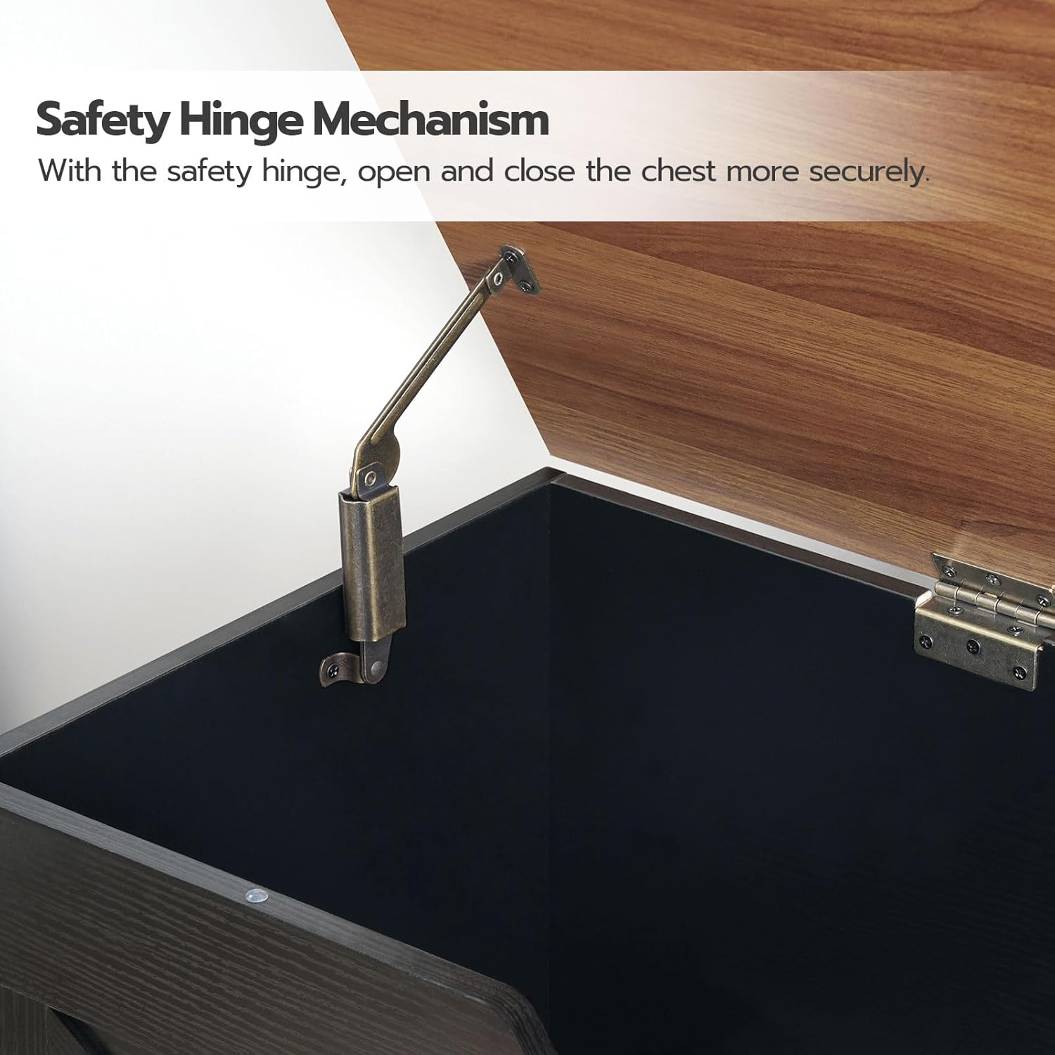 HOOBRO Storage Bench, 39.4" Retro Wooden Storage Chest with U-Shaped Cut-Out Pull, Safety Hinge, Supports 220 lb and Easy Assembly for Toy Box Organizer (Black and Walnut) BH771CW01