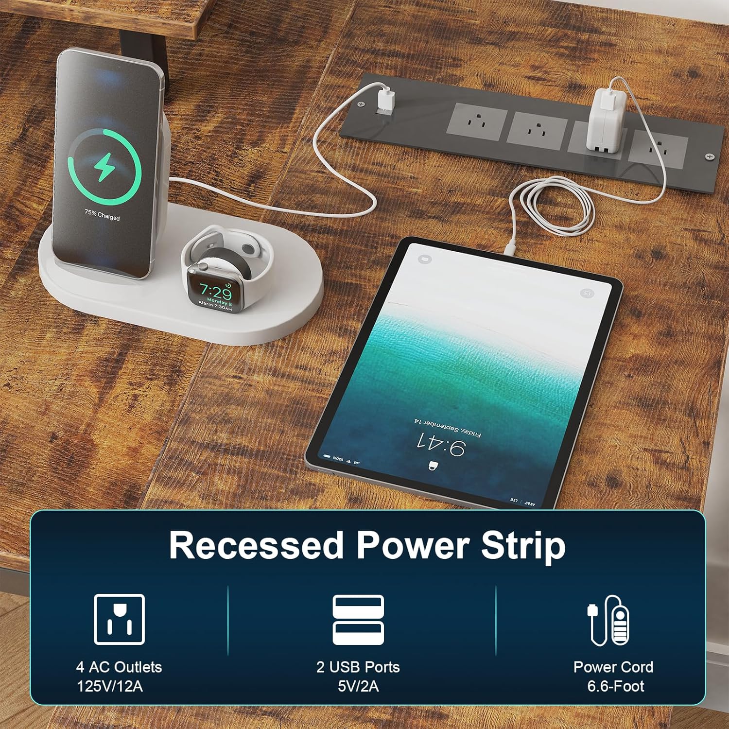 - 【Rechargeable Computer Desk】: The gaming desk includes a built-in power strip with 4-Outlet & 2 USB Ports, which can easily charge phones laptops, gaming gear and other office devices. Monitor stand on the desktop elevates your line of sight, allowing you to maintain proper sitting posture and protect your cervical and spine health