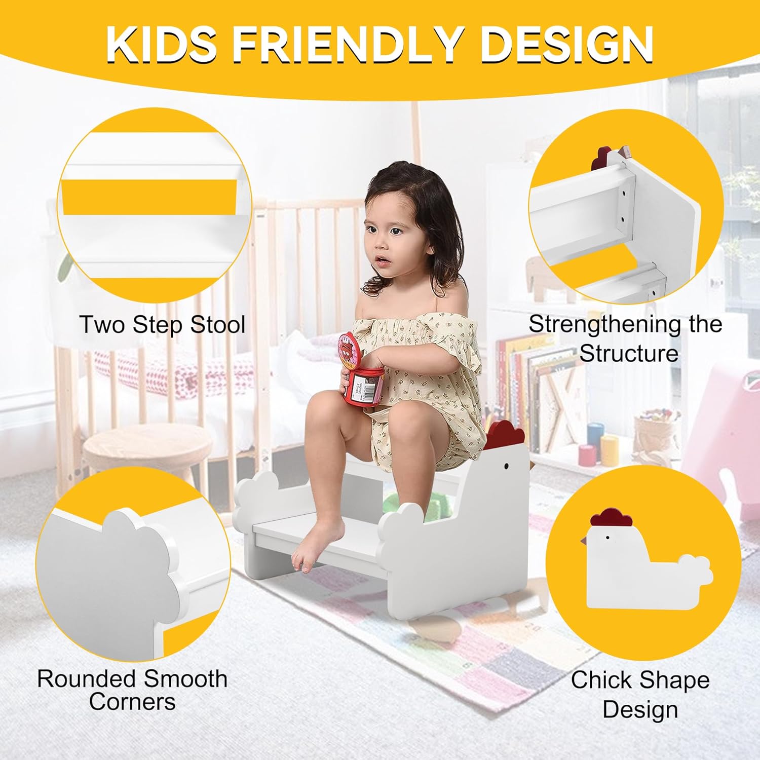 Wood Step Stools for Kids, Child Two Step Stool of Chick Shape, Toddler Step Stools Potty Training Stool, Easy to Move Safety for Kitchen, Bathroom, Bedroom, Toilet