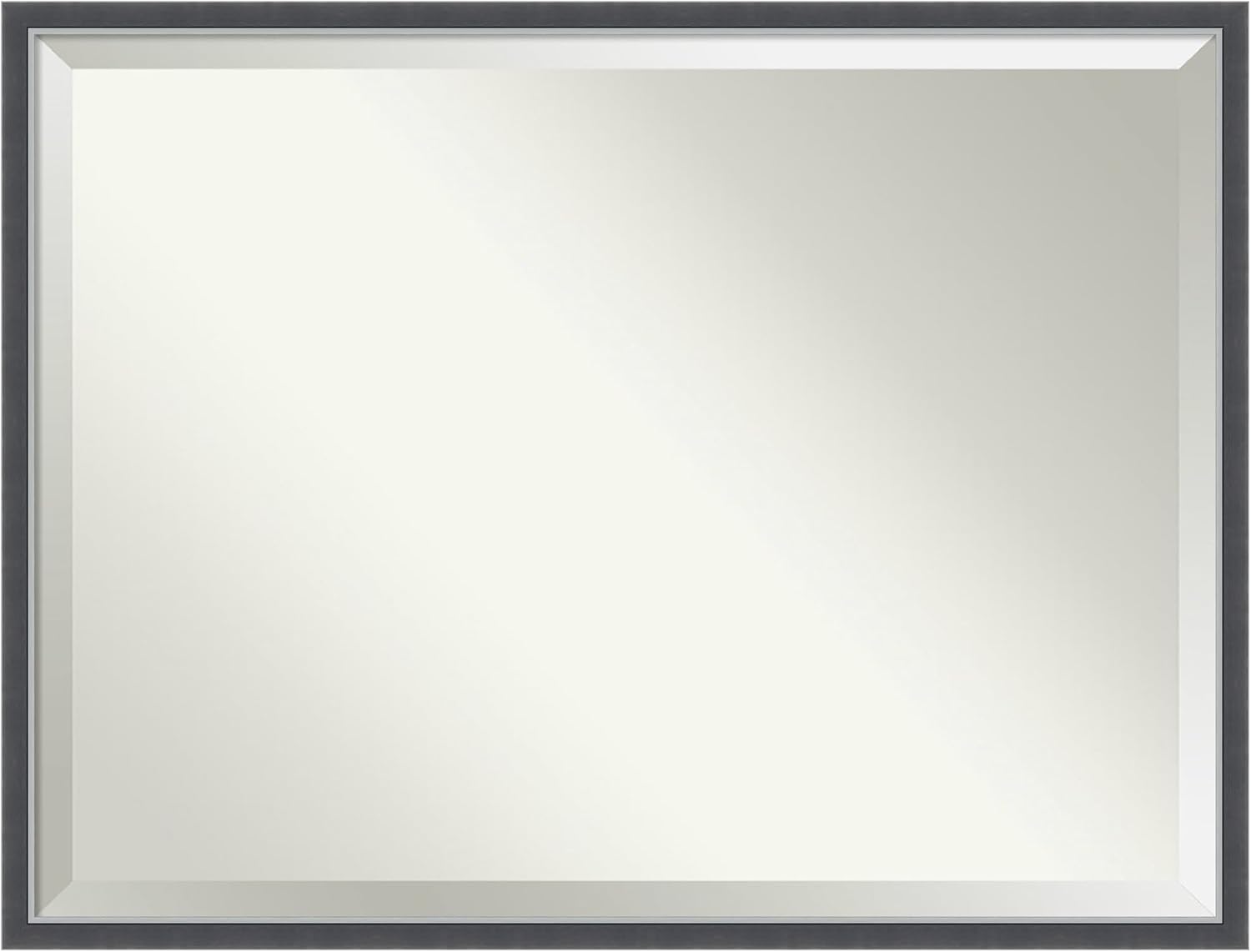Amanti Art Black Bathroom Mirror for Over Sink, 32x42 Eva Black Silver Thin Rectangle Vanity Mirror, X-Large Modern Frame, Hangs Horizonally and Vertically, Bathroom Wall Decor, Beveled Edge
