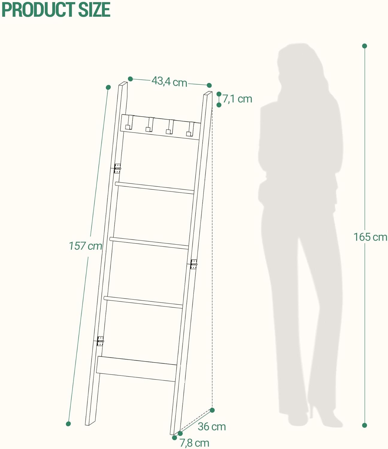 - Farmhouse & Space Saving: This farmhouse blanket ladder allows you to lean the towel ladder against the wall and use it as an organizer to store your clothes and blankets.4 removable Hooks are convenient for you to place your bag keys and other items.
