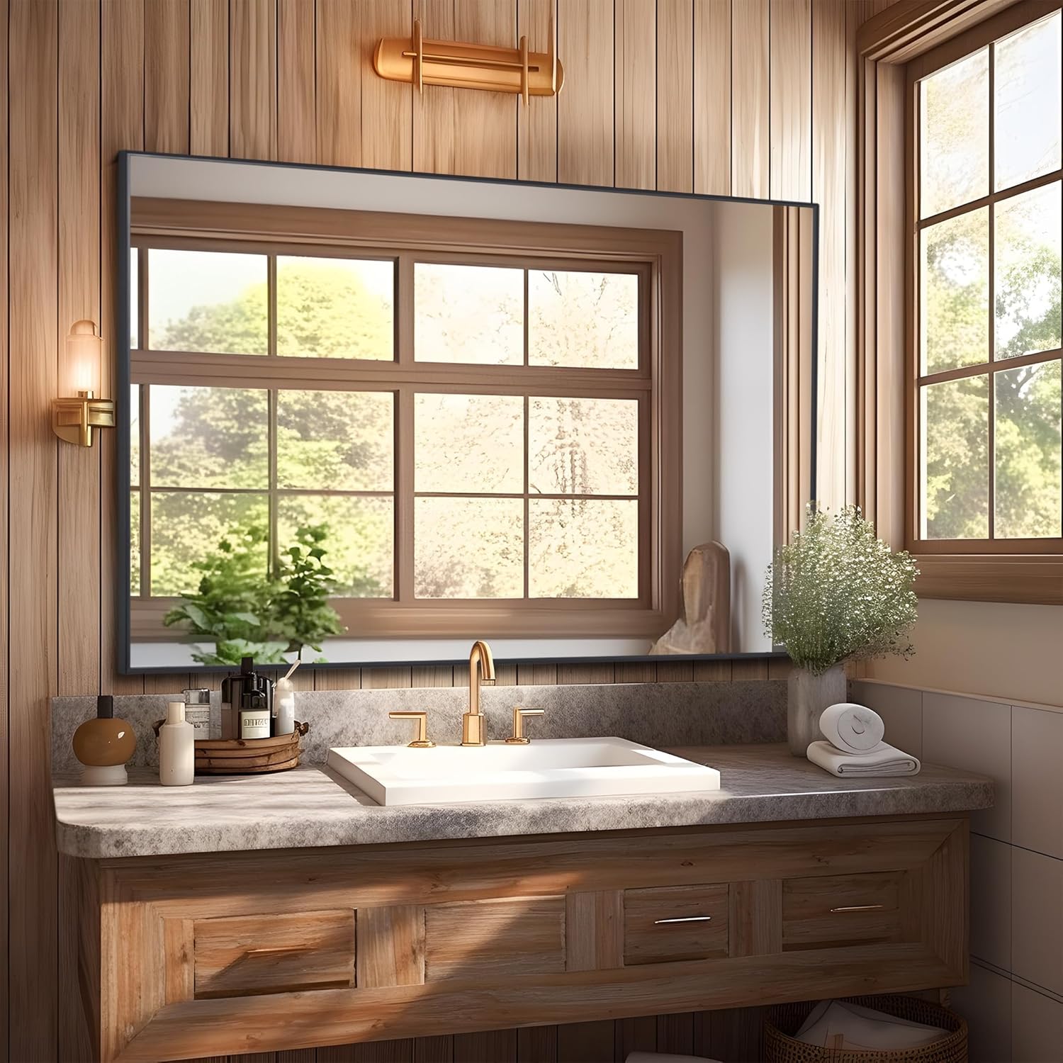 Black Bathroom Mirror for Wall, 30x48 Inch Rectangle Mirrors with Metal Frame, Modern Vanity Wall Mirror Decor for Entryway Hangs, Bathroom, Living Room Horizontal or Vertical