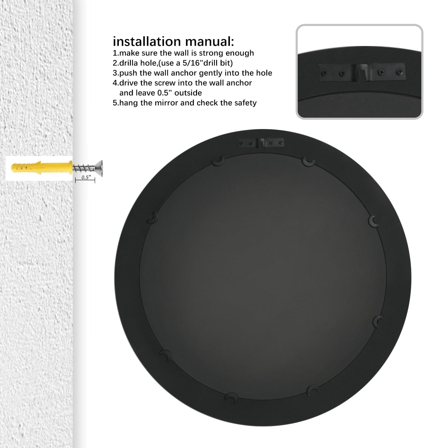 - 【Easy to Hang】 You can either lean this circle mirror against the wall or hang it on the wall. The installation is straightforward, using the screws provided in the package and following the instructions, with just 3 simple steps to complete the setup
