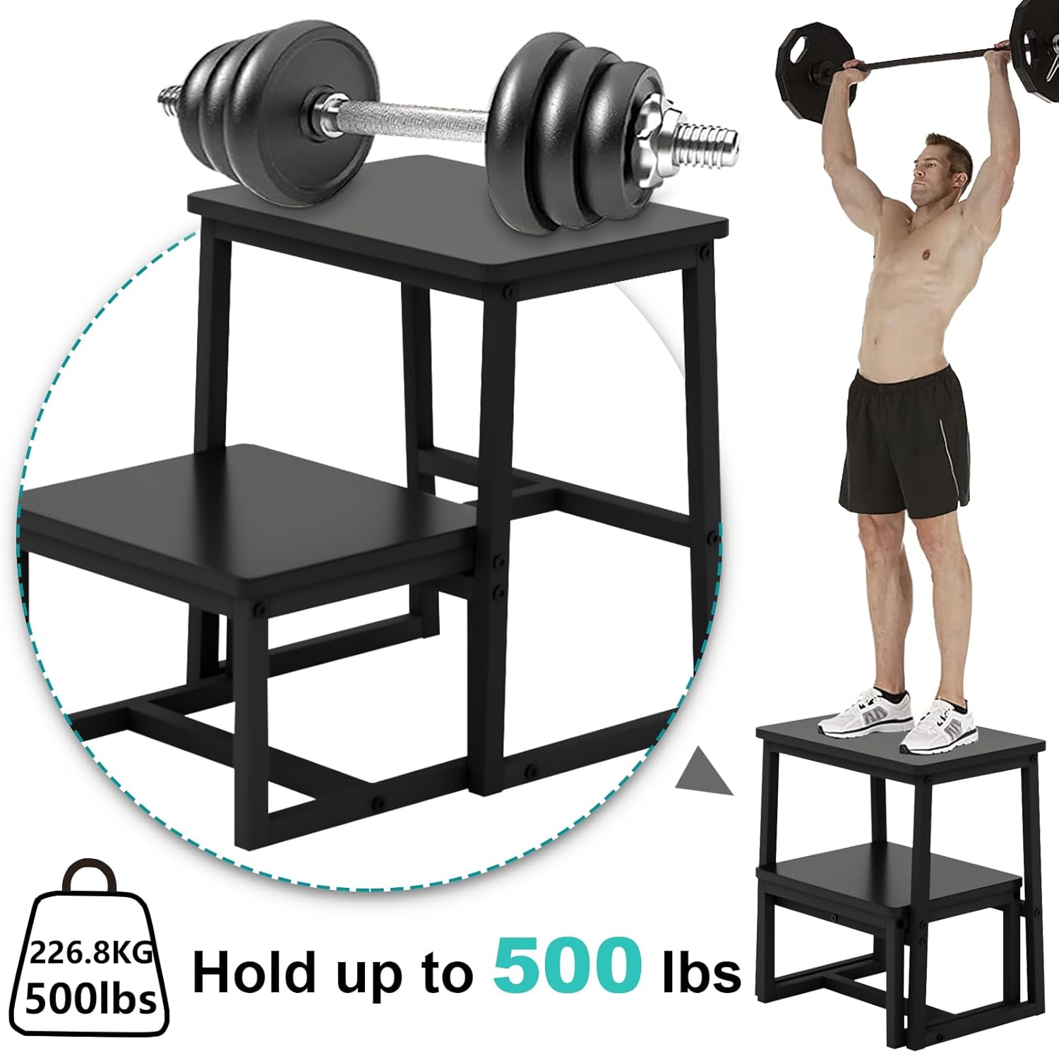 Step Stool for Adults,Holds up to 500Lb,3 in1 Heavy Duty Sturdy Two Step Stool for Kichen/Bathroom/High beds, Wooden&Metal Frame, Non-Slip Pads
