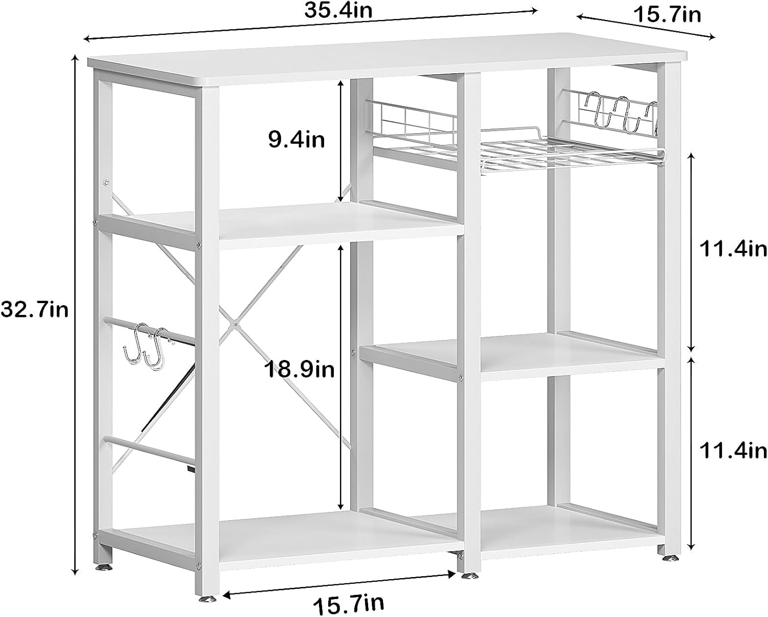 - 【Ample Storage Space】: 1.Extra basket can store fruits and vegetables or some small kitchen necessities. 2.Five little hooks make it easier to hang cooking tools like pots, pans, utensils and etc.