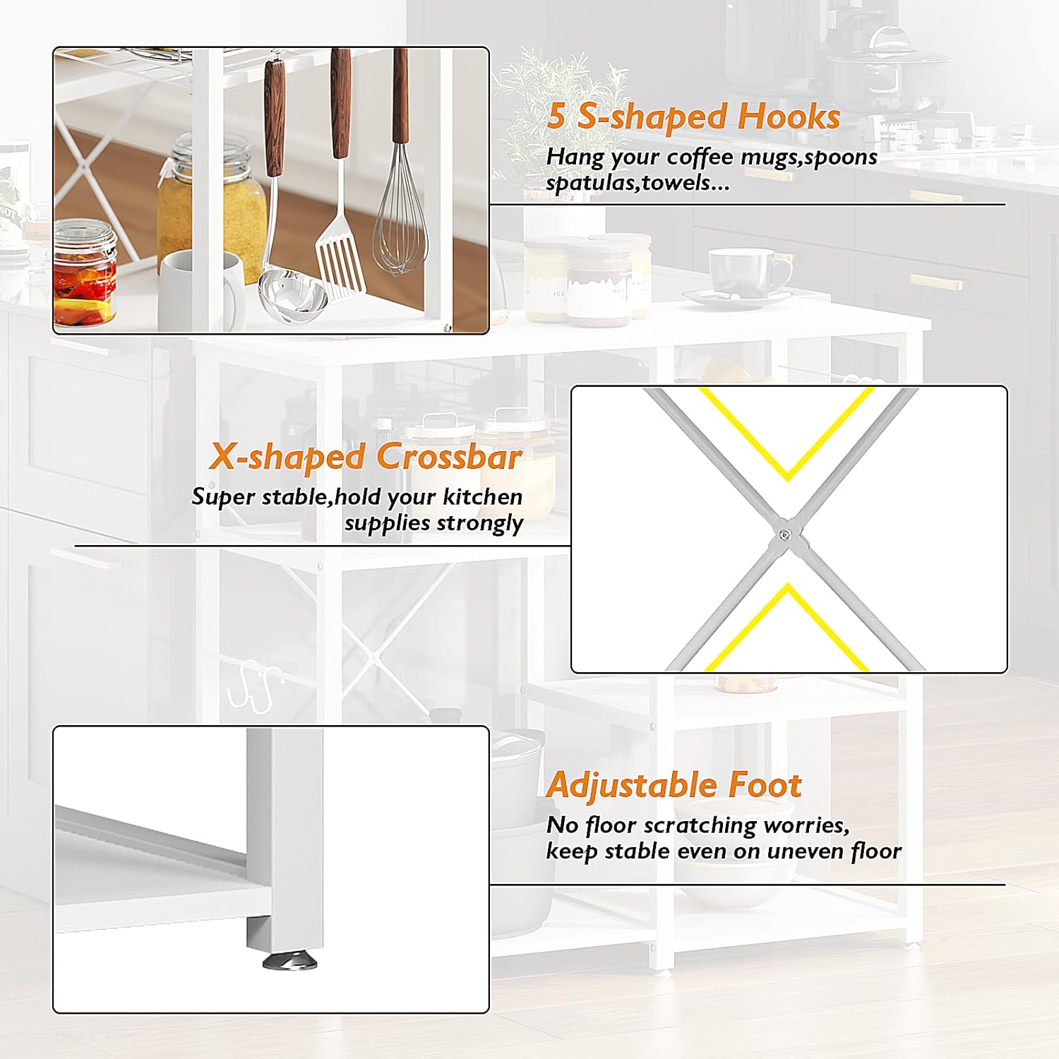 - 【Multi-Function】: Perfect as a kitchen baker's rack, microwave oven stand, kitchen storage shelf, spice rack organizer, baker's rack, microwave stand, kitchen workstation shelf,office storage rack. Fitting in home & kitchen.