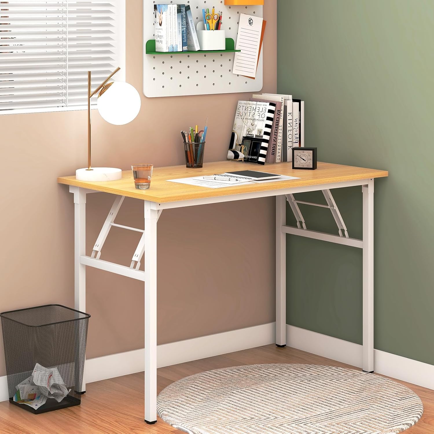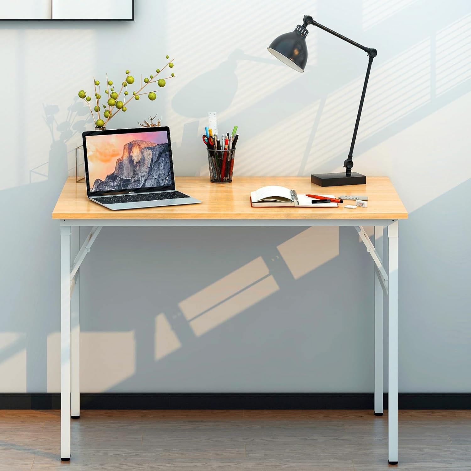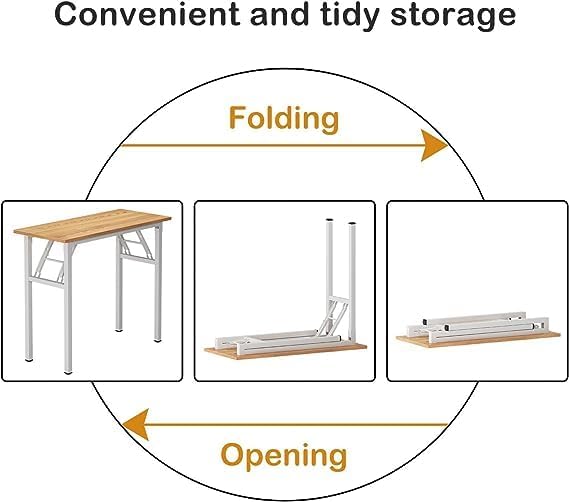 Need Folding Desk for Home Office 39-3/8 inch Length Modern Folding Table Computer Desk No Install Needed Teak Color Desktop White Frame AC5BW(100 * 60)