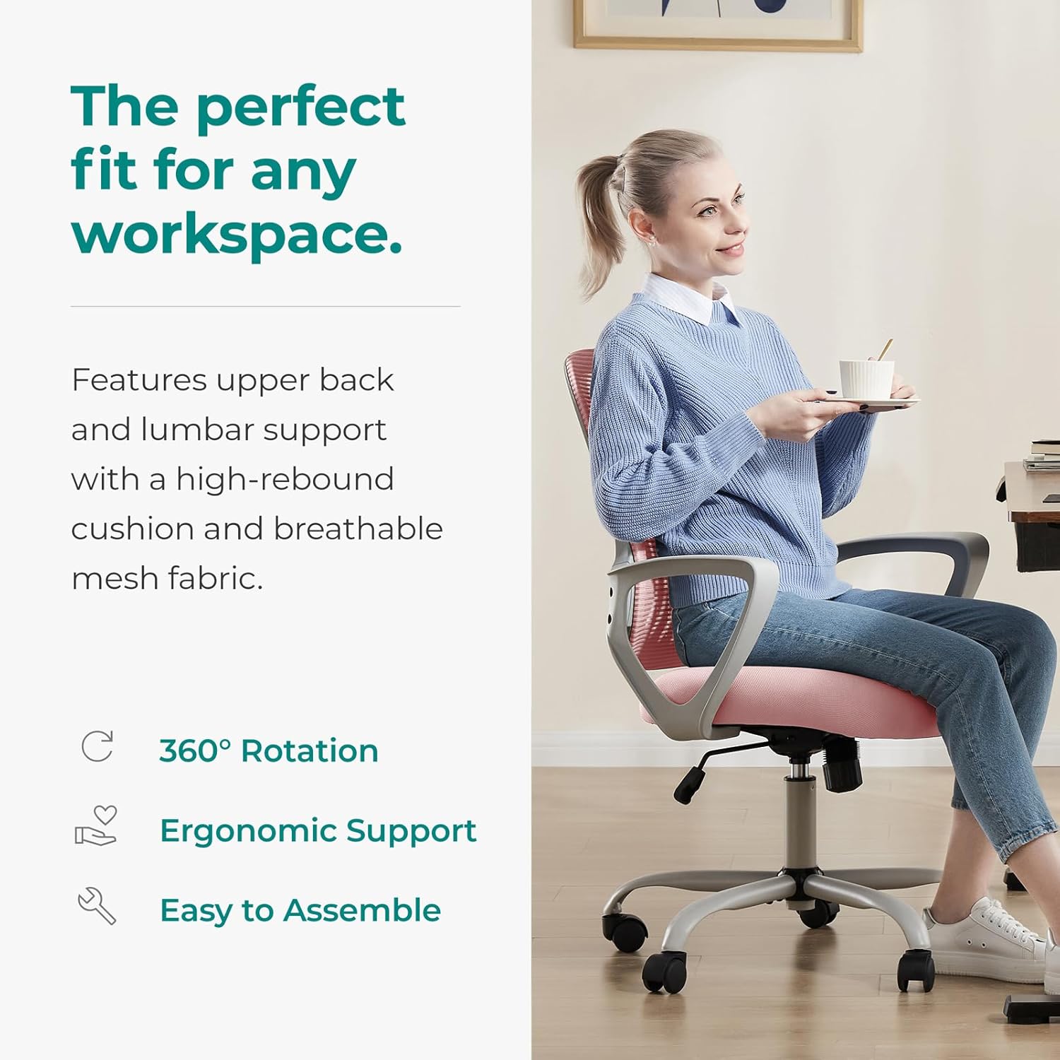 Office Chair, Computer Gaming Chair with Arms, Ergonomic Home Office Desk Chairs with Wheels, Mid-Back Task Rolling Chair with Lumbar Support, Comfy Mesh Swivel Executive Chair