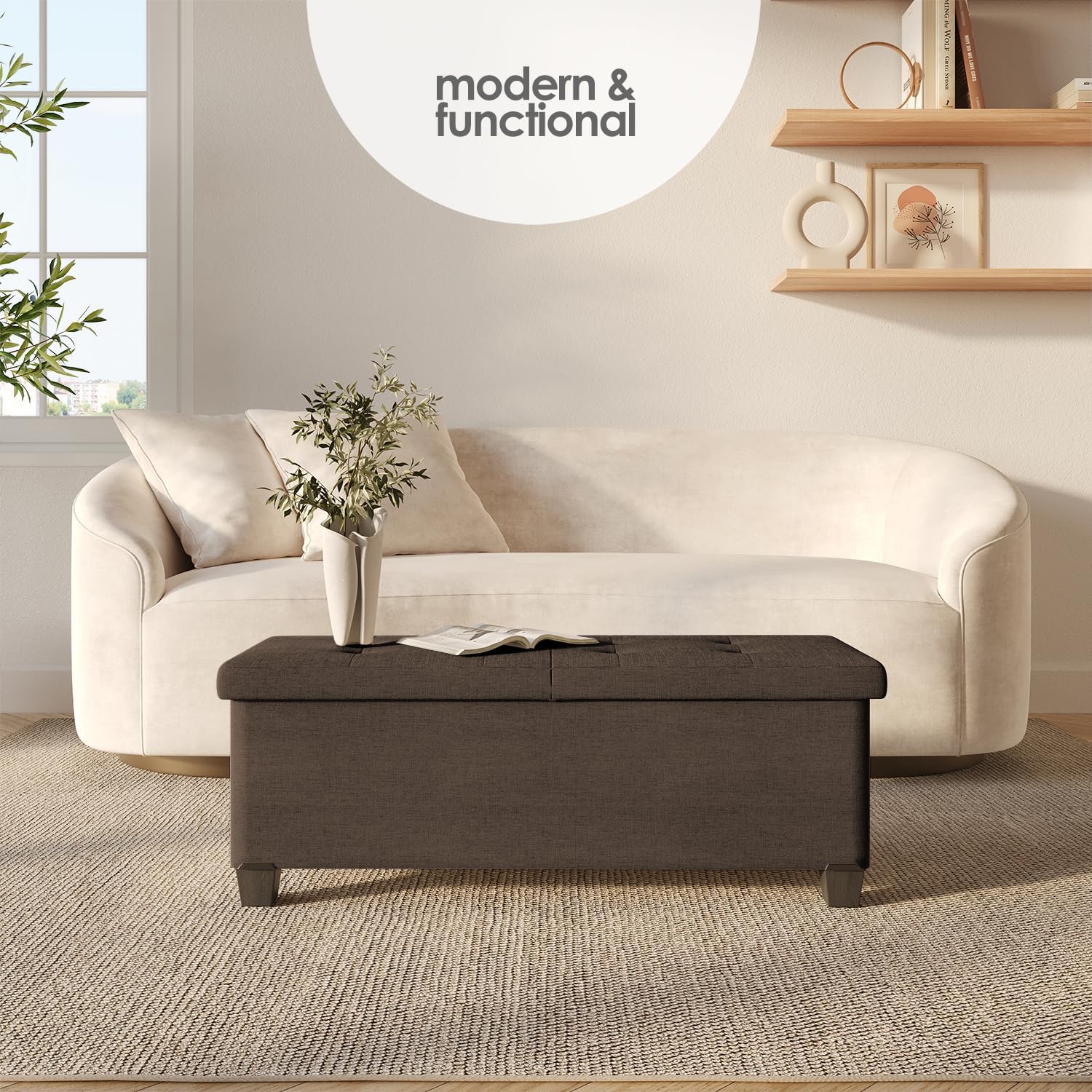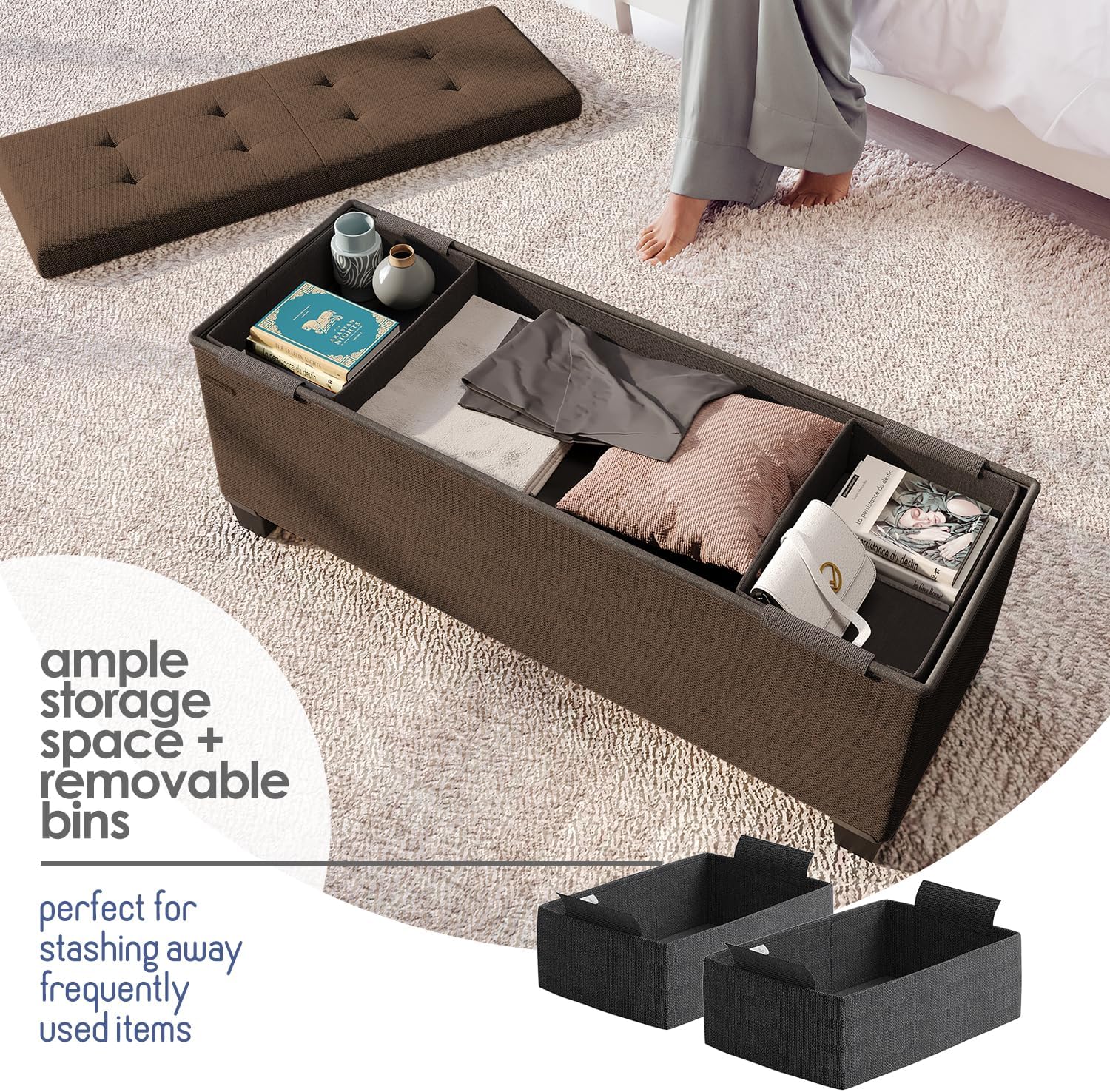 STORAGEBUD Storage Ottoman Bench with Bins, 43-in Storage Bench for Bedroom End of Bed, Folding Foot Rest Ottoman for Living Room Max 660lbs, Fabric Ottomans, Brown