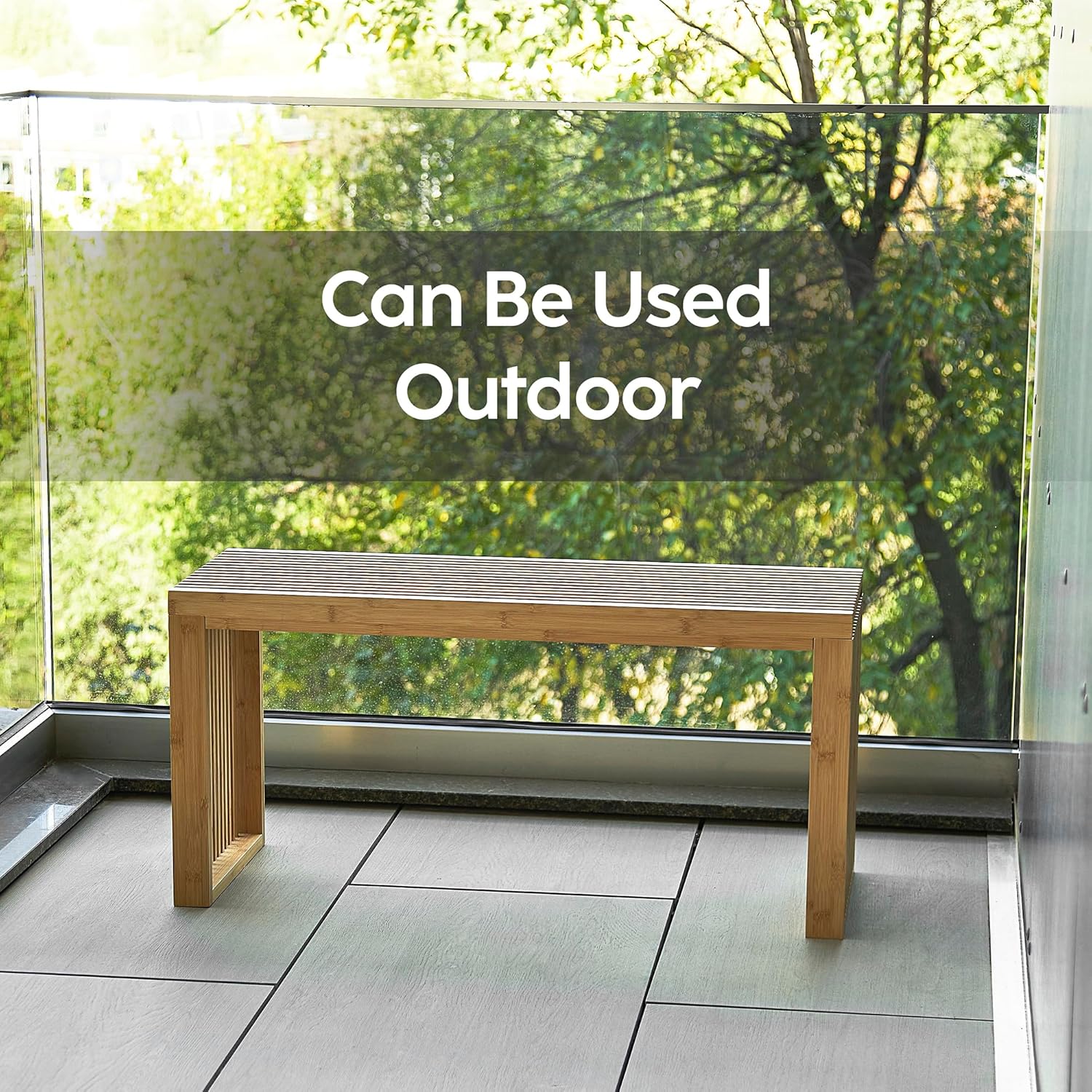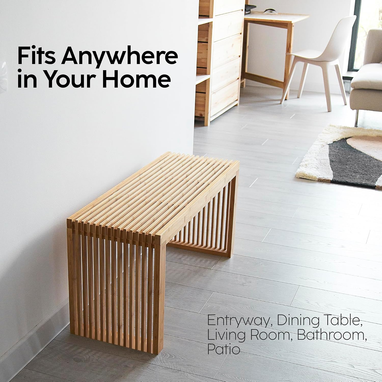 Bamboo Natural 36 inch Wooden Bench, Small Wood Benches for Entryway, Living & Dining Room, Kitchen, Bedroom, Bathroom, Hallway, Front Door, For Indoor & Outdoor Patio Use, Mid Century Modern Decor