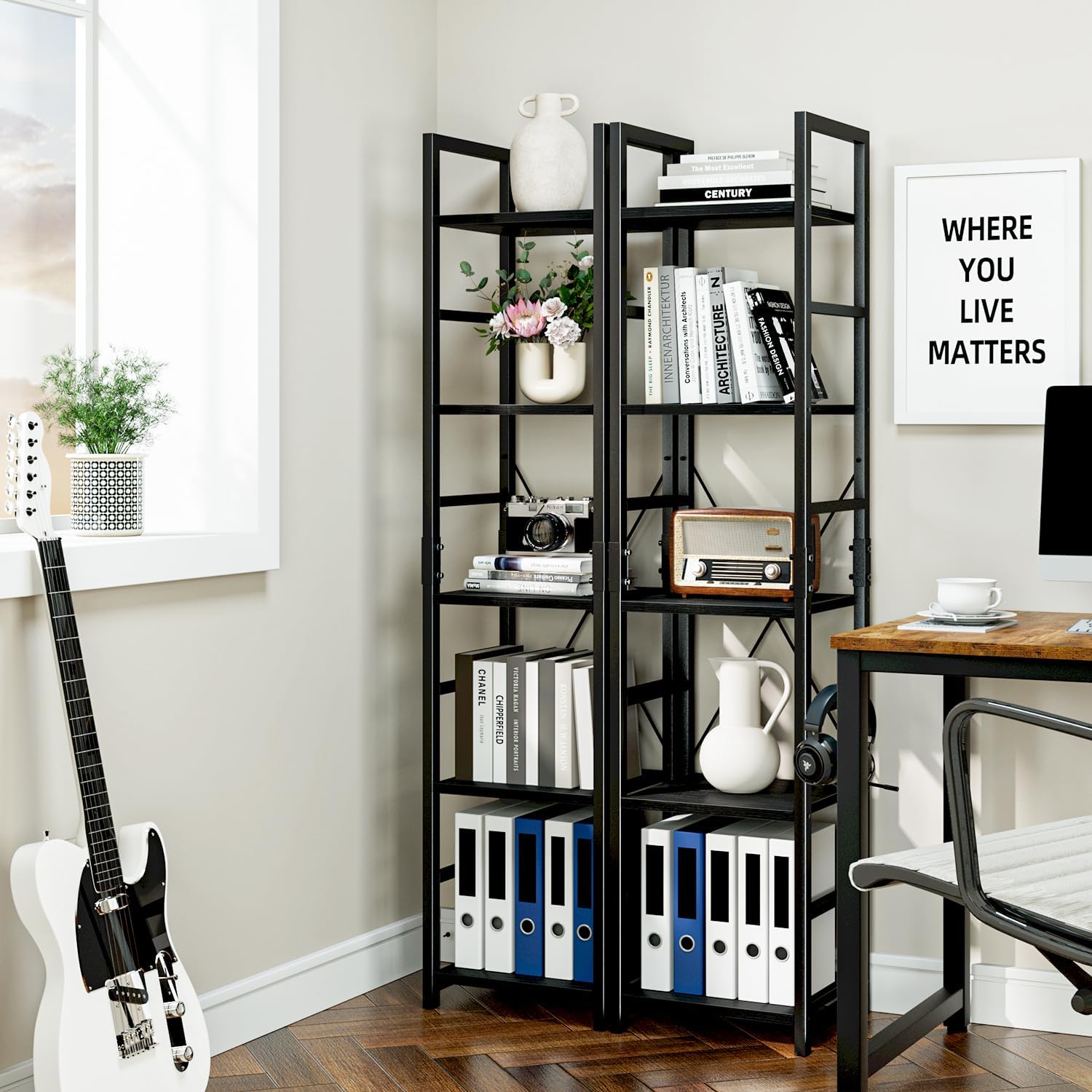 - 【High-Quality Metal Frame & Fixed Rod Assembly】Constructed by premium metal and selected particle board, the contemporary metal bookcase is solid, stable, sturdy, and durable; With top notch anti-rust coating, the whole shelf looks more sophisticated; With an excellent metal frame and thick solid panel, each panel of the bookcase can hold up to 30 lbs; Because of the fixed rod assembly, the industrial shelf has strong stability and can perfectly protect your items; No shaking No wobbling