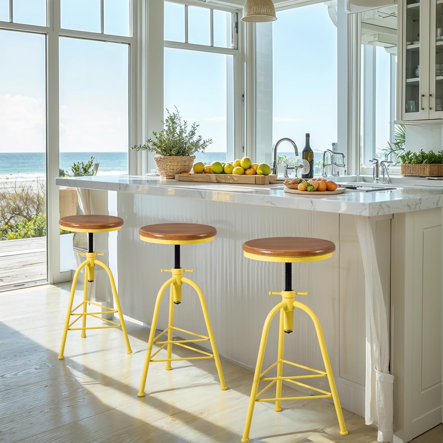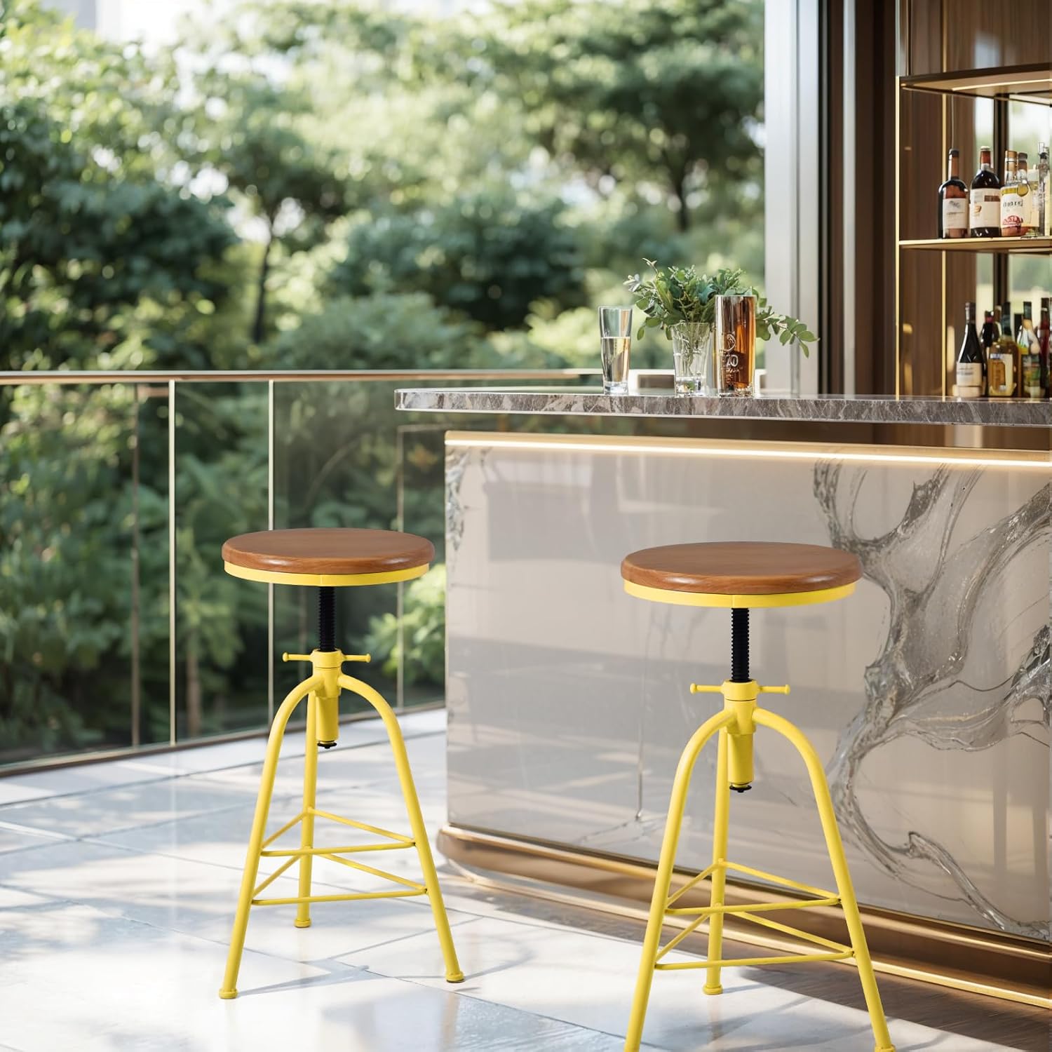 - 【FULLY ADJUSTABLE HEIGHT】With a smooth wooden seat board, adjustable height swivel and comfortable foot rest, this bar can provide the best seating comfort because it can adjust the height. The height of the seat is adjustable from 24in to 27.5in
