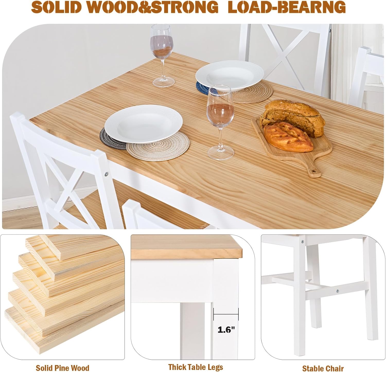 - 🍻【Easy Assembly and Maintenance】: The dining room table chairs set is designed for easy assembly, with clear instructions included. Moreover, the pine wood surface is easy to clean and maintain, ensuring hassle-free upkeep for years to come