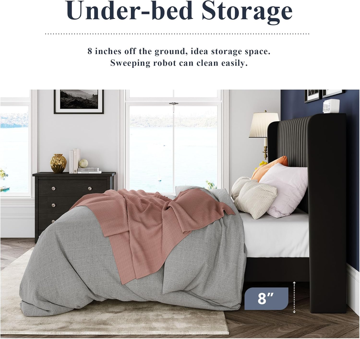 - Comfortable and Elegant: Designed in a modern wingback headboard, smooth velvet, and soft sponge wrap the entire bed frame, which will add sophisticated style to any bedroom