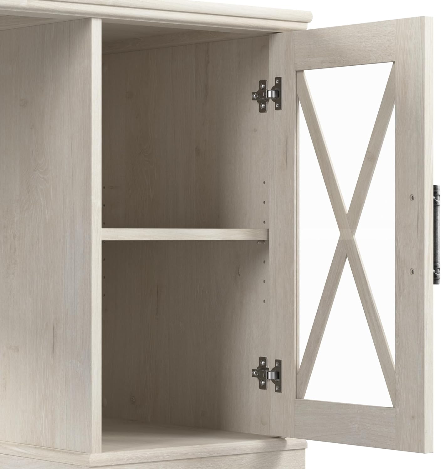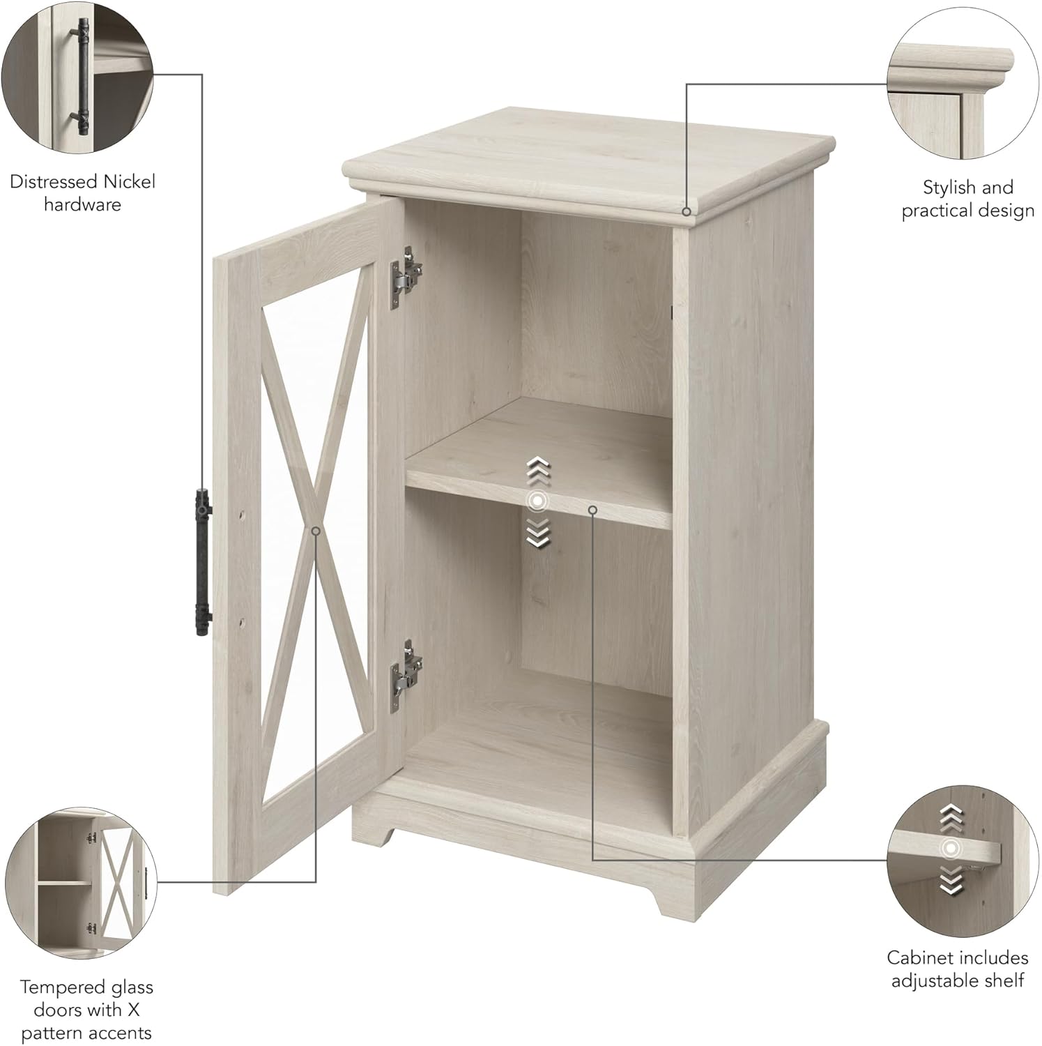 Bush Furniture Lennox Small Farmhouse End Table with Storage in Linen White Oak | Living Room Organization