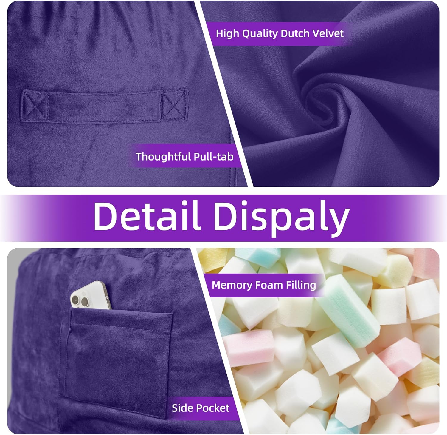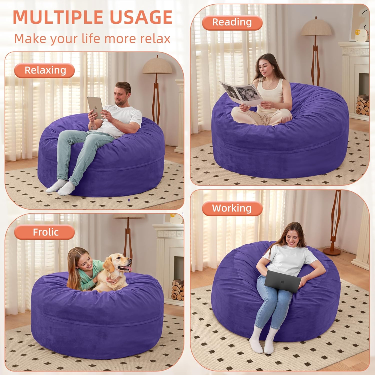 - LUXURIOUS MICROFIBER COVER: The premium super soft velvet cover for our adult bean bag chairs are skin-friendly which will bring you ultimate silky soft touch feeling when you sit, just push to everywhere you like to snap or play games with your family.