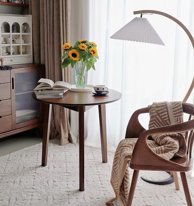 24" Round 3 Legs Casual Dining Table, Walnut Brown Rubberwood Coffee Table End Table Modern Leisure Table Small Dining Room Kitchen Furniture for Small Space