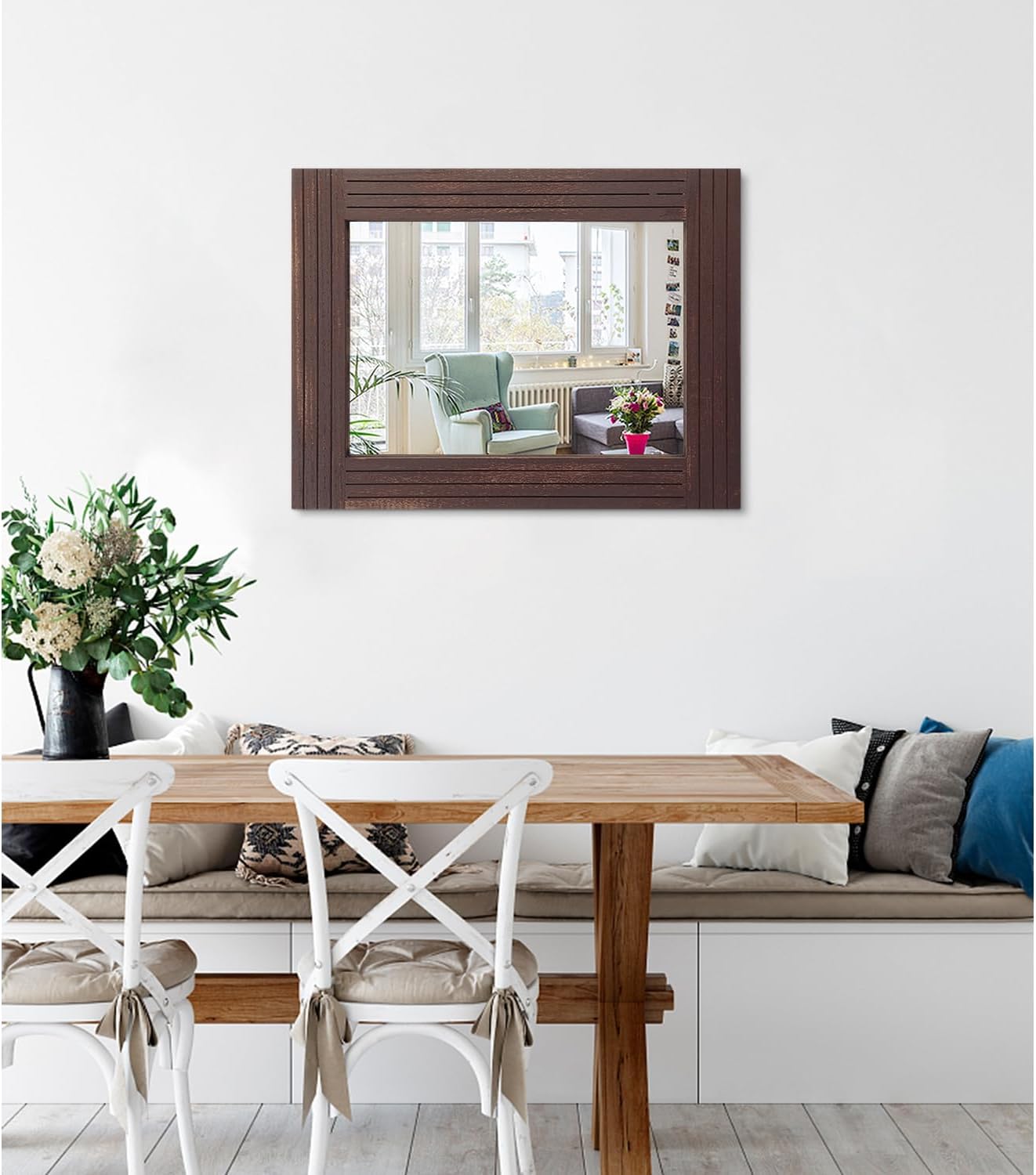 Mirrors for Wall Rustic Wooden Frame Rectangle Mirror Vintage Hanging Mirror for Bedroom Bathroom Living Room Farmhouse Wall Decor Brown Large 20" x 16 "