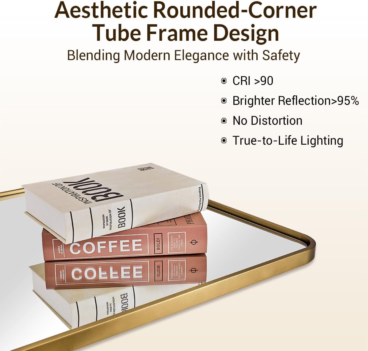- GORGEOUS GOLD COLOR: Choosing the quality metal frame and the excellent craftsmanship makes our gold color no too shiny or too bright and presents its unique brushed brass gold color. Almost customers love our gold color and most feedback our gold color could fit well with the gold fixtures. If you need a large gold rectangle mirror, highly recommend this one