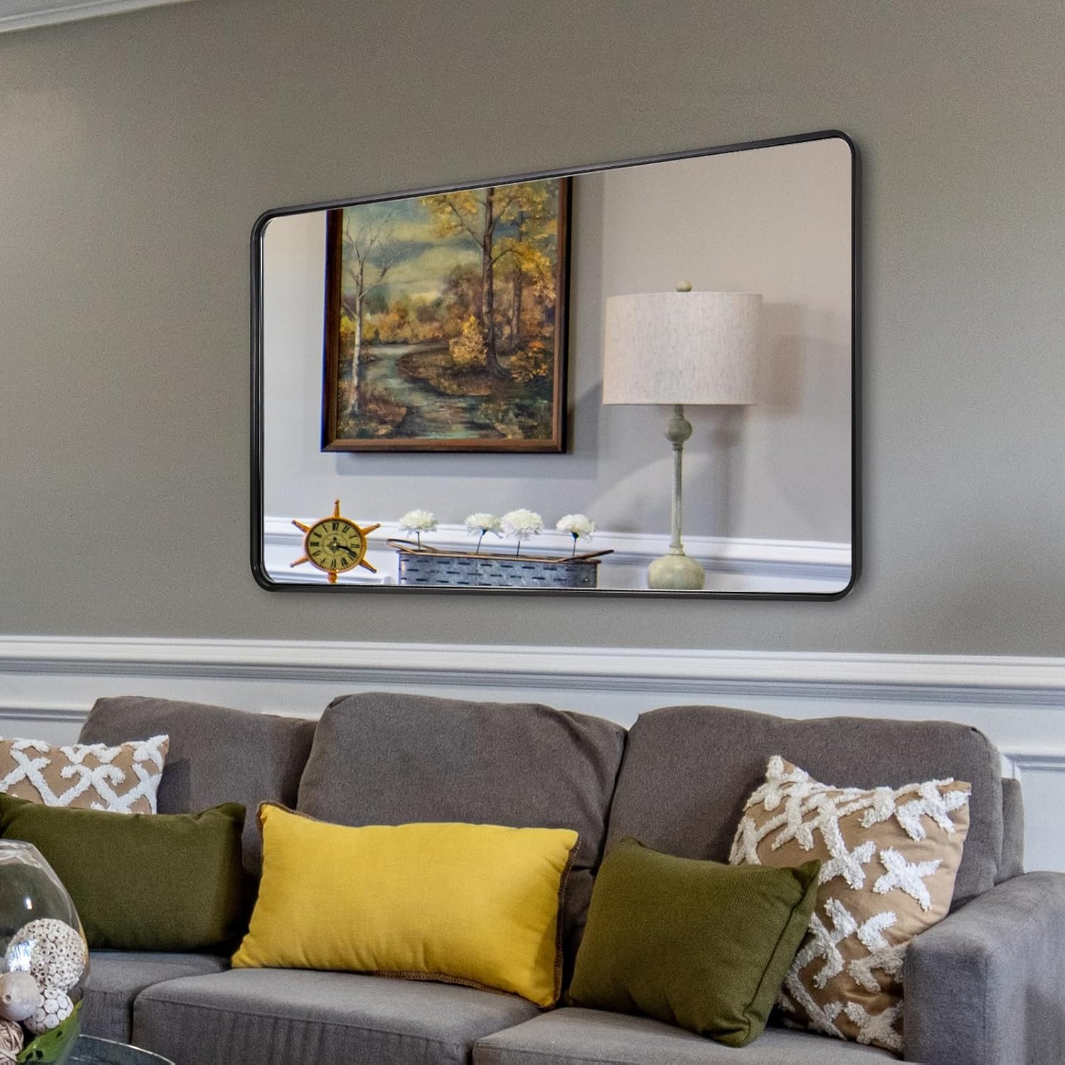 - PREMIUM QUALITY MATERIAL: (N.W:38.80LBS) This 48x30 mirror is made of the iron metal with oxidation-resistant to be rustproof. 4mm HD glass supported by 9mm MDF backboard to be shatterproof. The matte black finish with the tube framed make the difference and the gorgeous of this rounded rectangle mirror. The beauty cannot be found in any alloy frame mirror