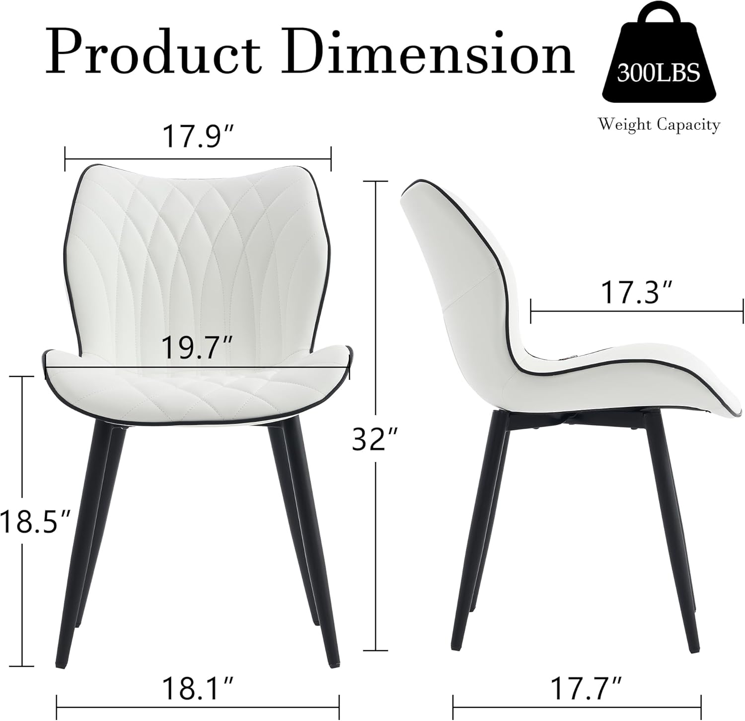 YOUNIKE Dining Chairs Set of 2, Upholstered Faux Leather Dining Room Chairs with Wide Curved Back and Adjustable Metal Legs, White