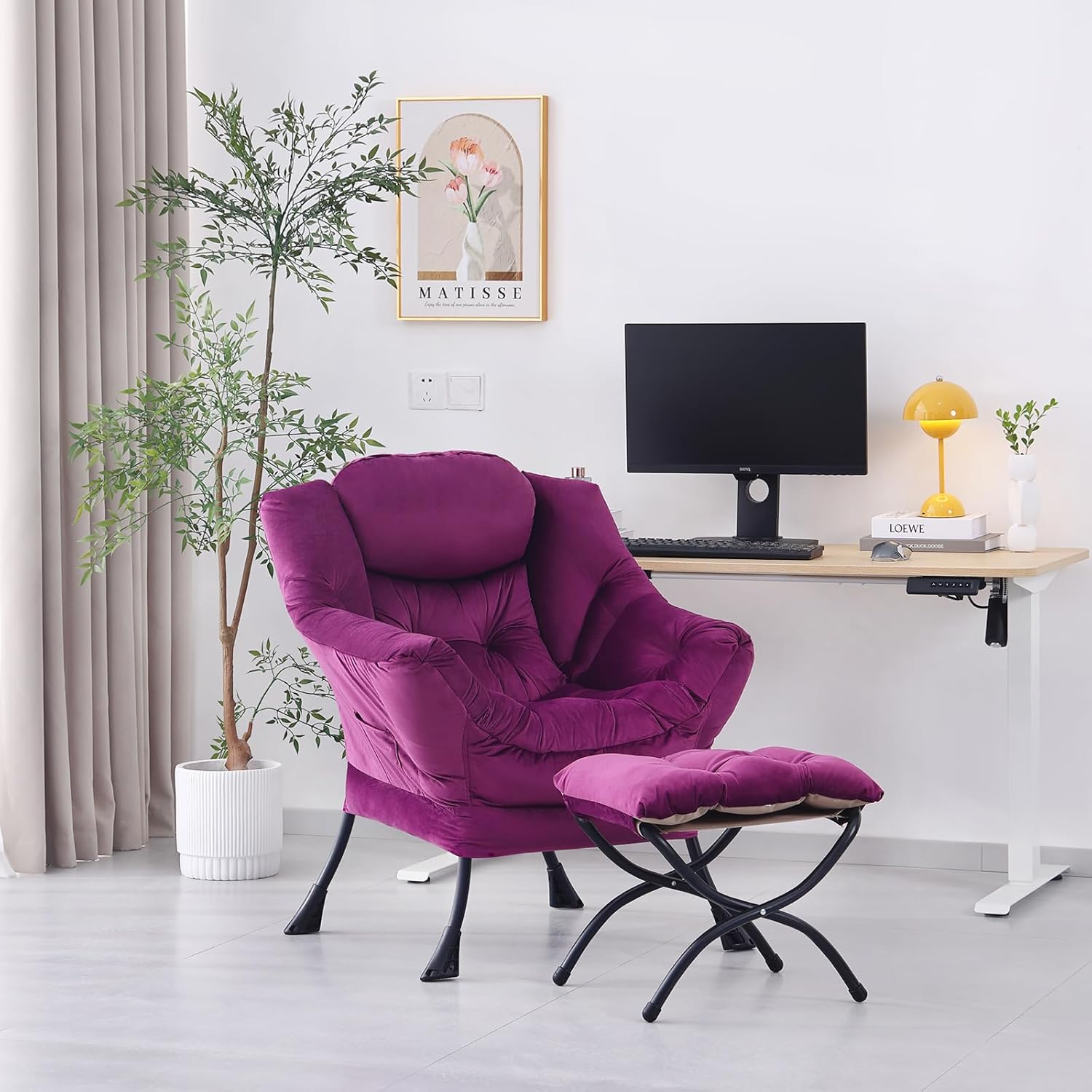 - LAZY CHAIR WITH OTTOMAN: The comfy lazy chair comes with a versatile folding footstool. You can also put the footstool next to the sofa and coffee table in the living room as a footstool to relax your feet, or even put it in the hallway or doorway and sit on a small stool to change your shoes.