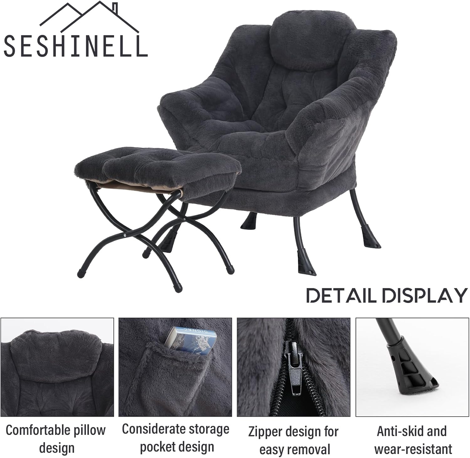 - LAZY CHAIR WITH OTTOMAN: The comfy lazy chair comes with a versatile folding footstool. You can also put the footstool next to the sofa and coffee table in the living room as a footstool to relax your feet, or even put it in the hallway or doorway and sit on a small stool to change your shoes.