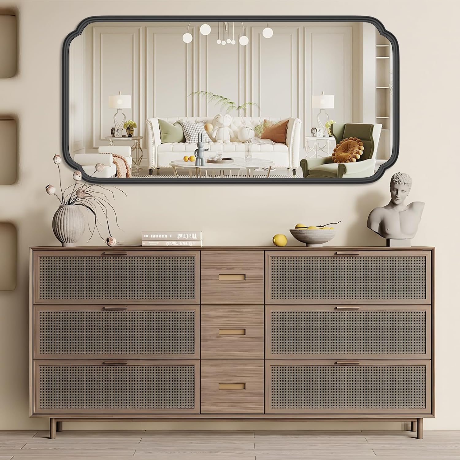 - 【Multi-size Design】Black wall mirror 48×24 inch. Multi-Size Design offers both gold and black colors for coustomer to choose from. Meets the decor needs to industry, rustic and modern style of bathroom, Multi-scene use for bathroom,bedroom,living room,hotel or salon.