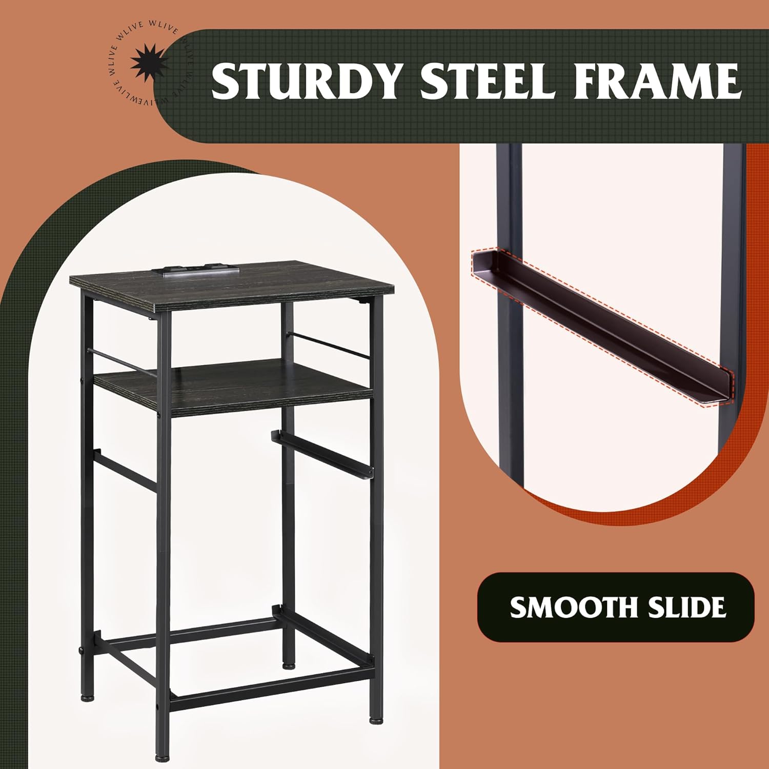 - [Good Stability]: The steady metal frame strengthen the load capacity of table top.It also comes with 4 adjustable feet to adapt to uneven ground while protect your floor from scratch.