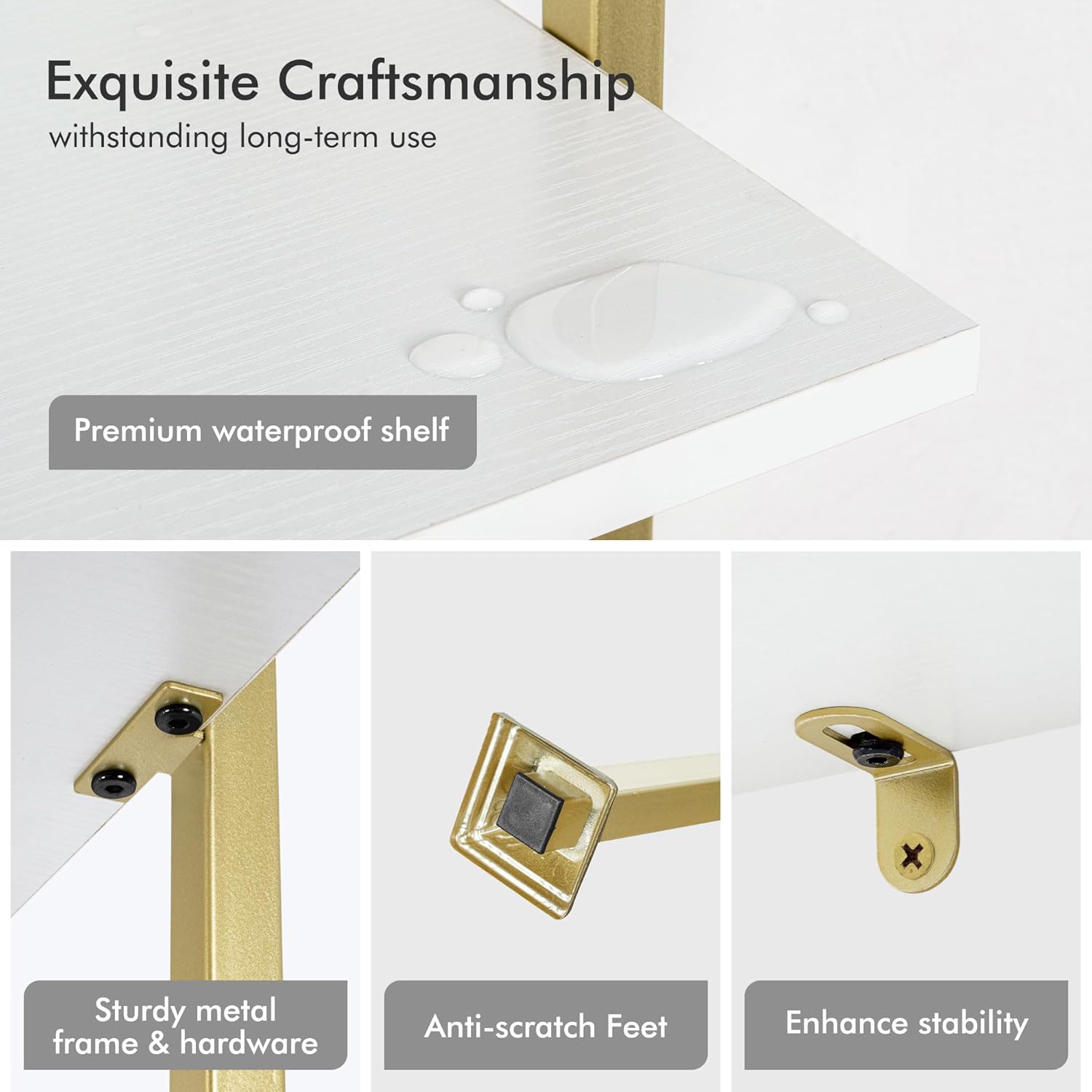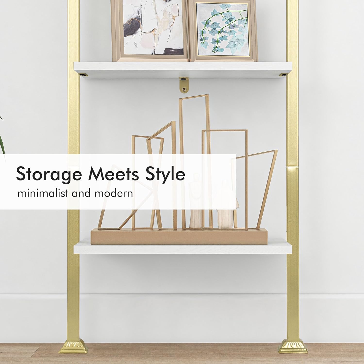 - Sleek and glamorous: Glam up any room with this stunning 5-tier shelves. The open display shelfe bookcase features white shelves juxtaposed against brushed brass metal for the perfect modern duo.