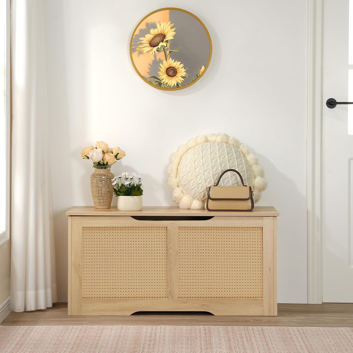 HOOBRO Storage Bench, 39.3" Toy Box, Rattan-Like Storage Chest, Sturdy Entryway Bench Supports 220 lb, Toy Chest, Safety Hinge, U-Shaped Opening, Easy Assembly, Natural NL11CW01