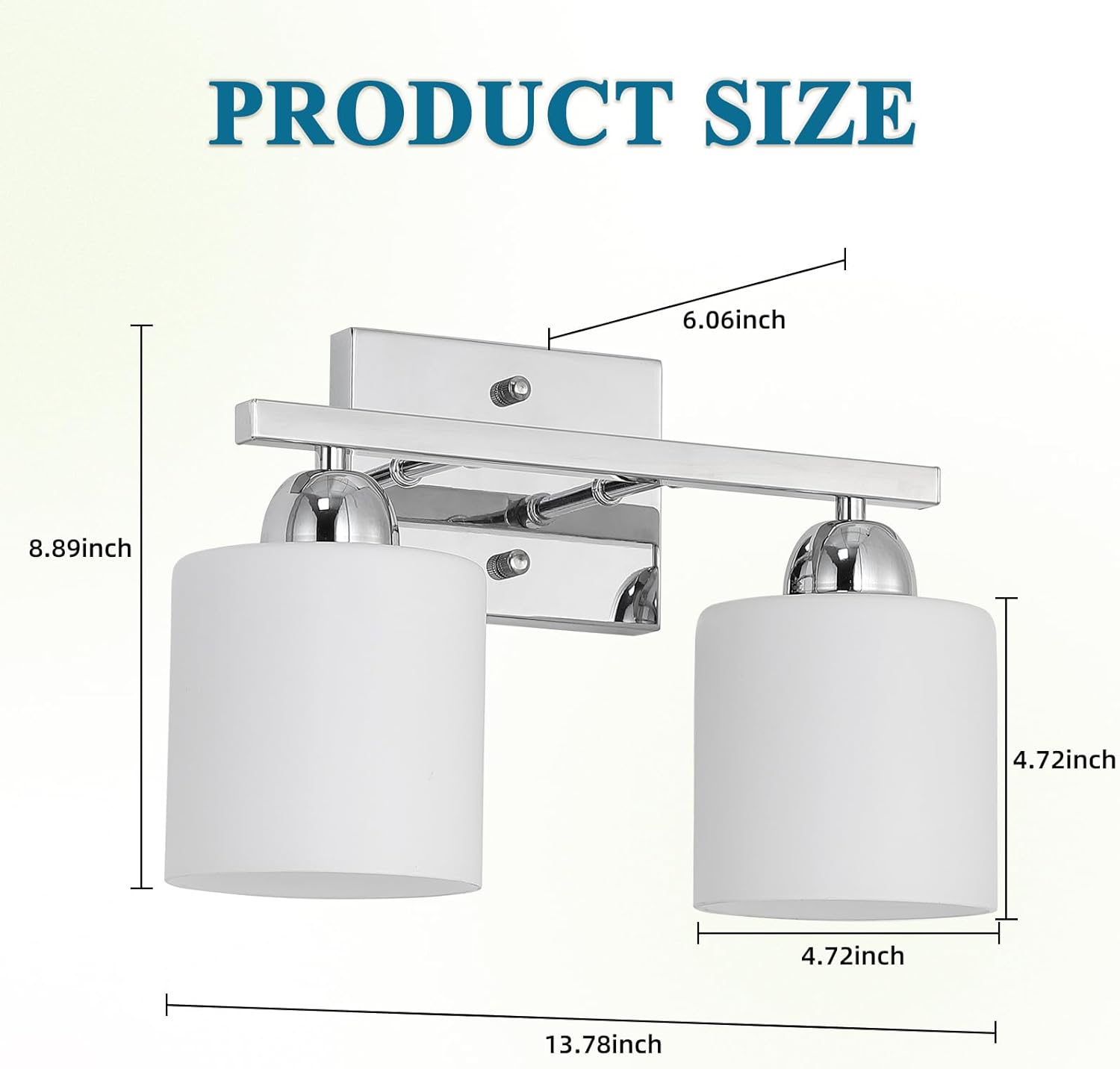 Stainless Steel Milk Glass Vanity Lights for Bathroom, 2 Light Chrome Bathroom Light Fixtures Over Mirror, Ceramic E26 Sockets Wall Mounted
